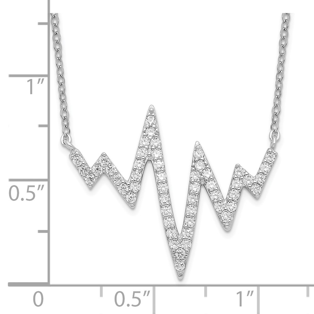 Sterling Silver Rhodium-plated CZ Heartbeat Necklace (QG4585-18)