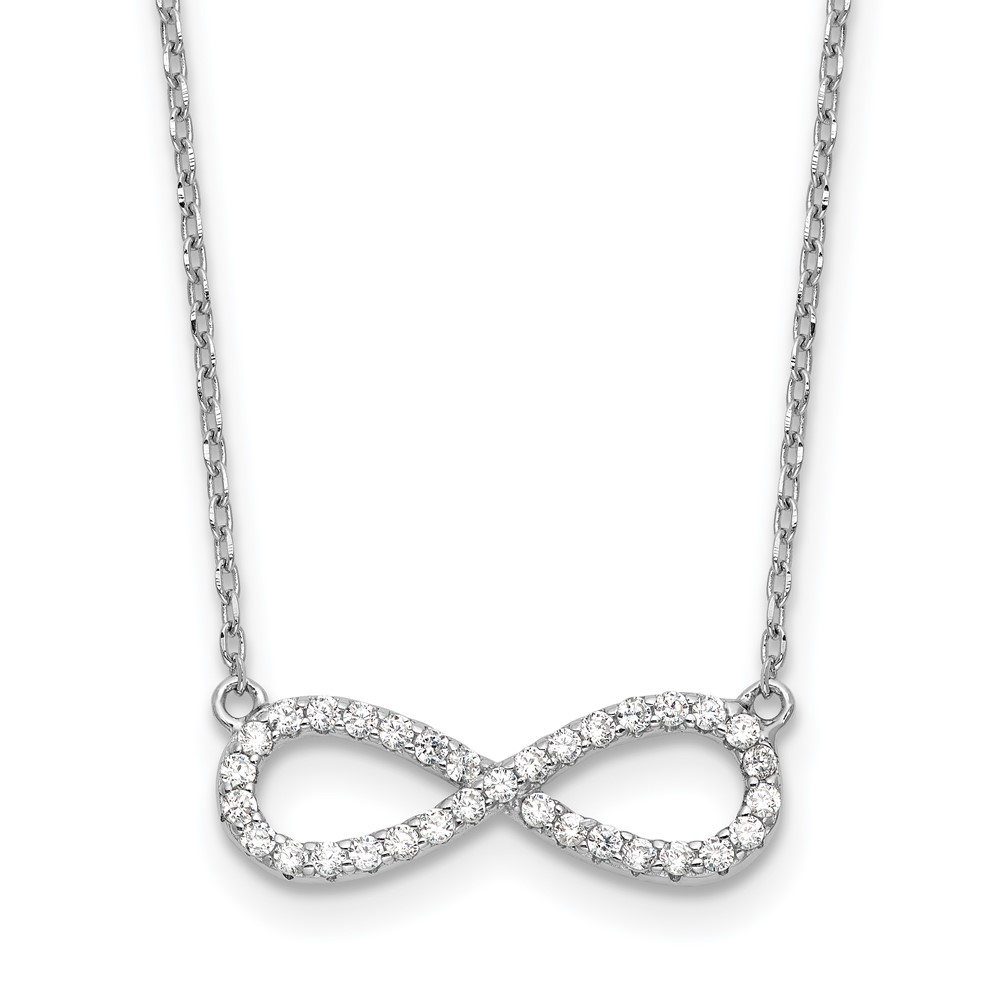Sterling Silver Rhodium-plated CZ Infinity Symbol 18in w/2in ext. Necklace (QG6619-18)