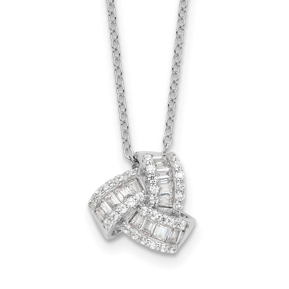 Sterling Silver Rhodium-plated CZ Love Knot 18in Necklace (QG6651-18)