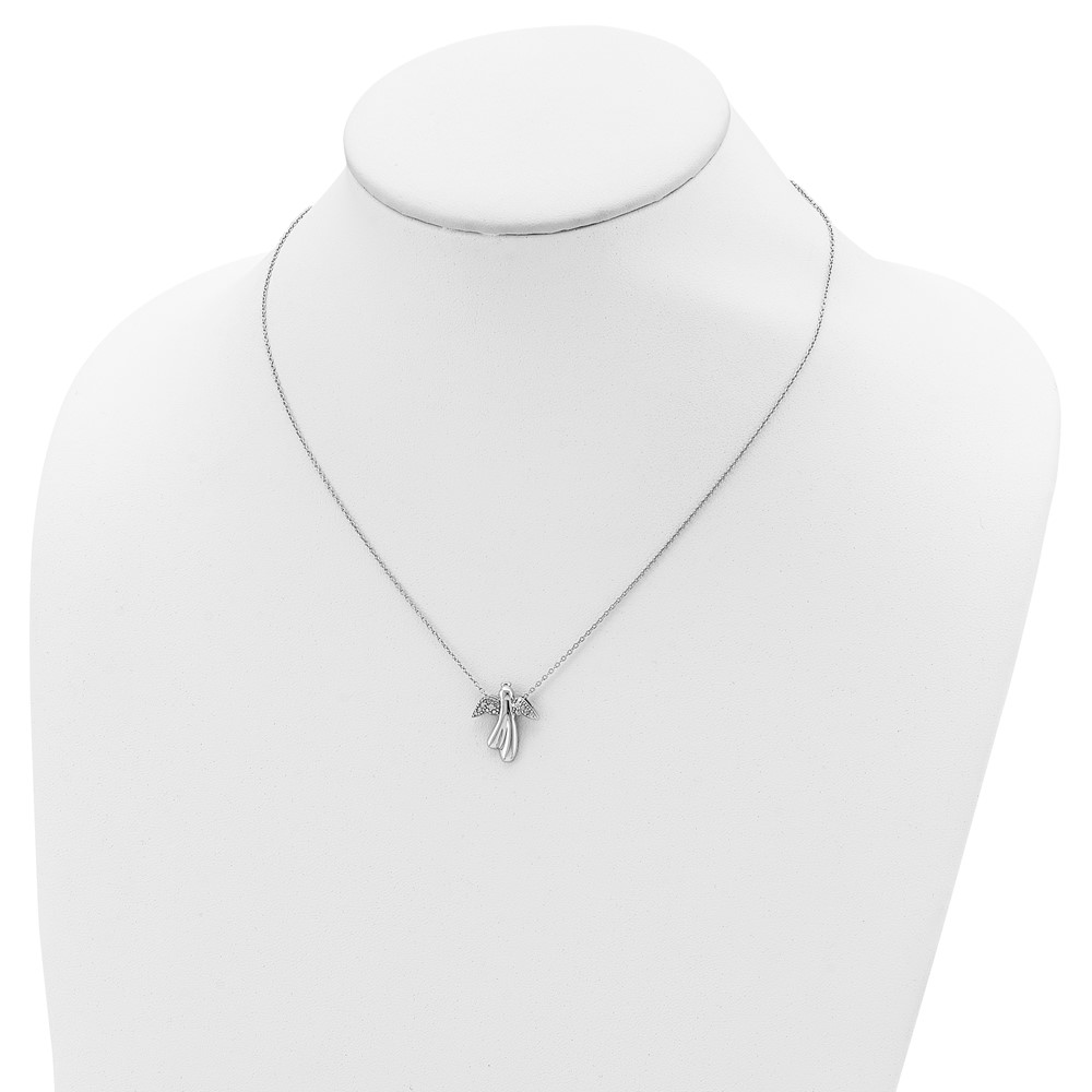 Sterling Silver Rhodium-plated Diamond Angel Necklace (QG2054-18)