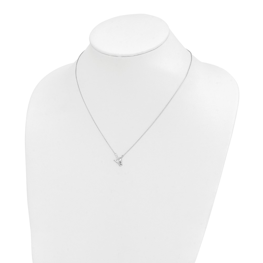 Sterling Silver Rhodium-plated I Love You Hand Signal Necklace (QG6089-18)