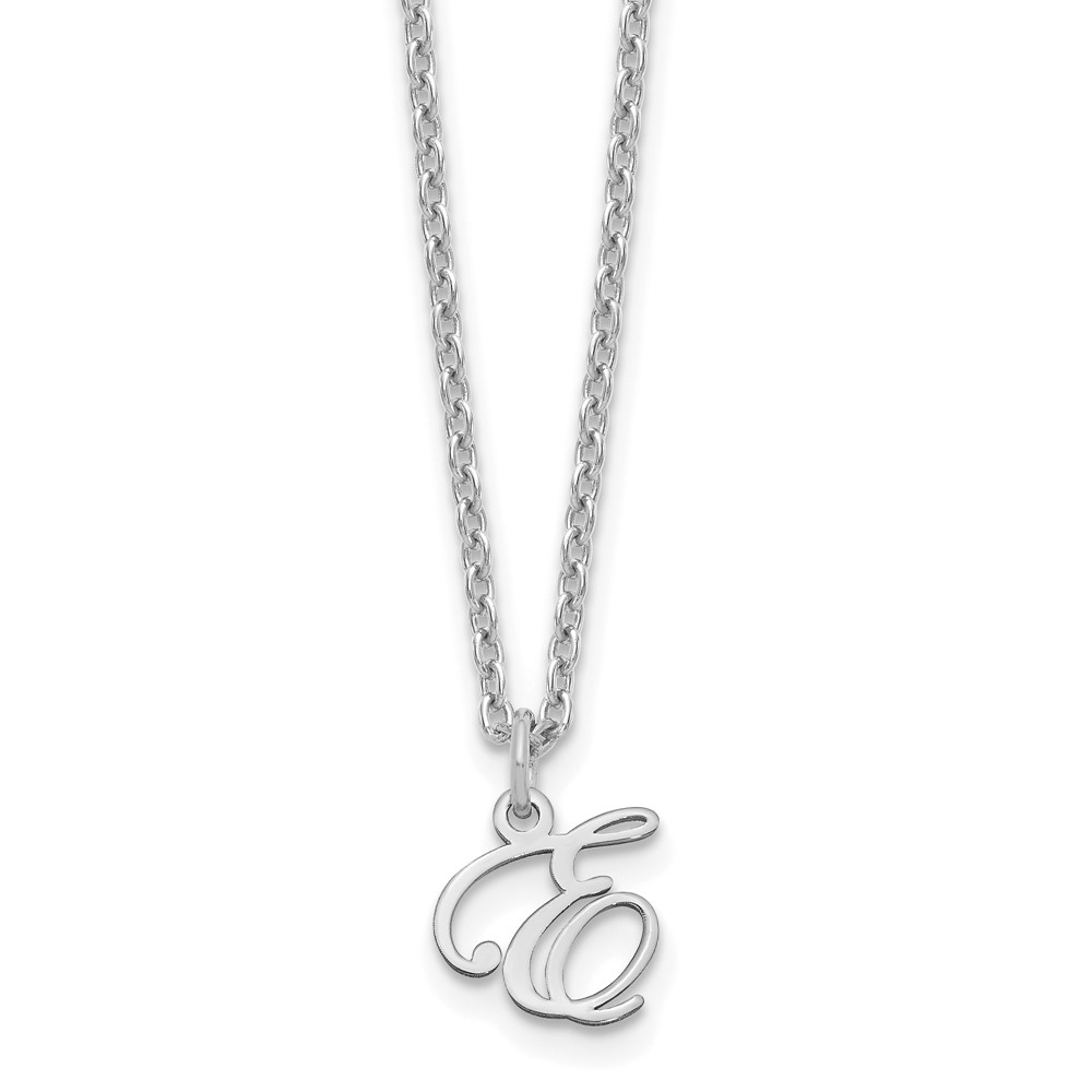 Sterling Silver Rhodium-plated Letter E Initial Necklace (XNA756SS/E)