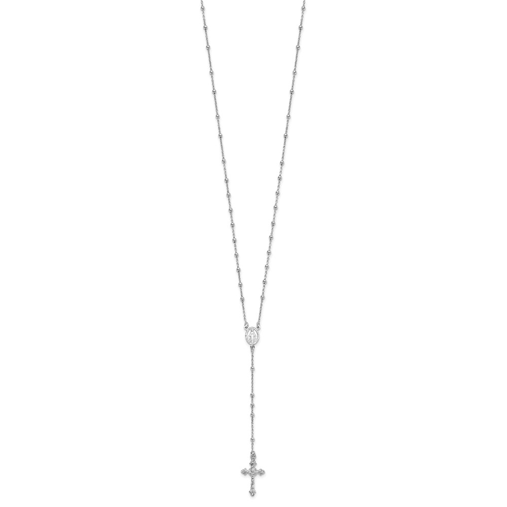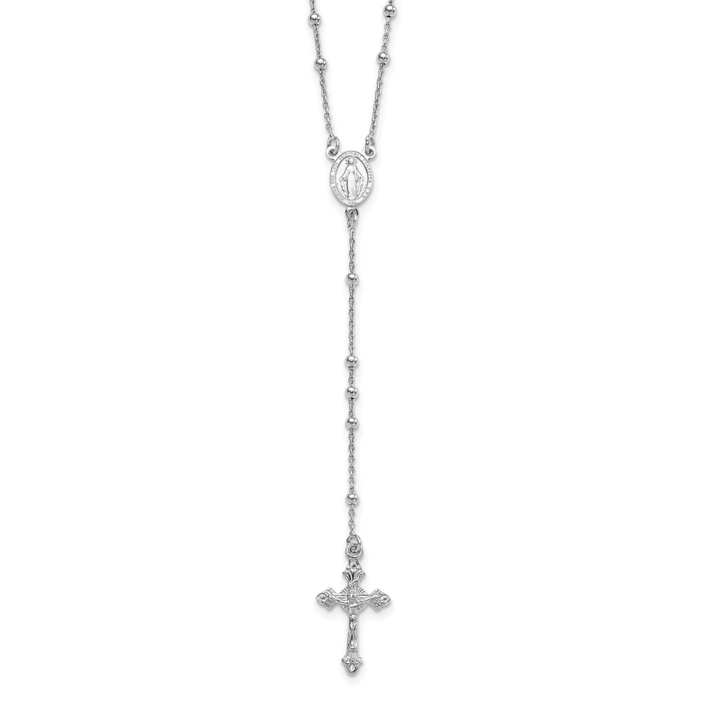Sterling Silver Rhodium-plated Polished Beaded Rosary 24 inch Necklace (QH5351-24)