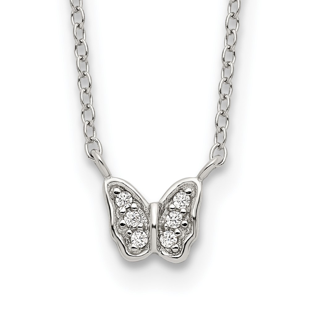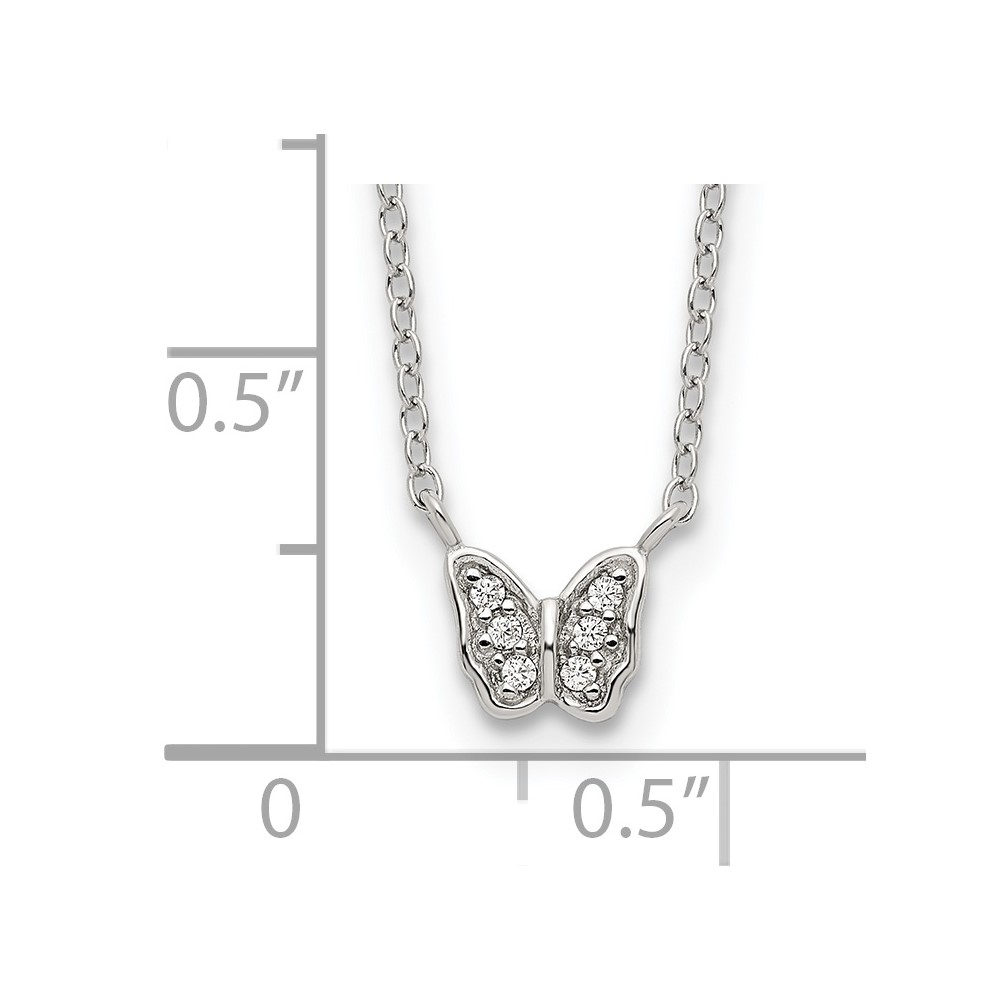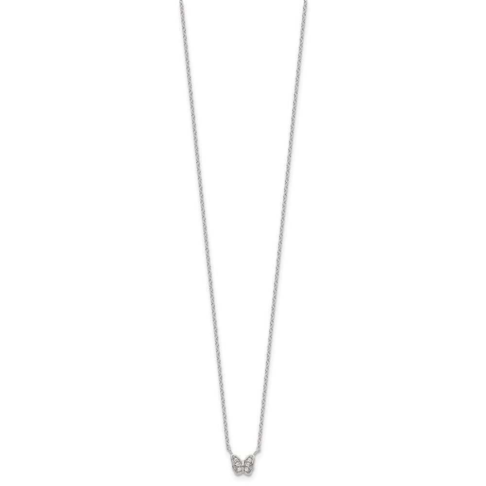 | Fine Jewelry | Sterling Silver Rhodium-plated Polished CZ Butterfly 16 Inch Necklace with 2 Inch extension