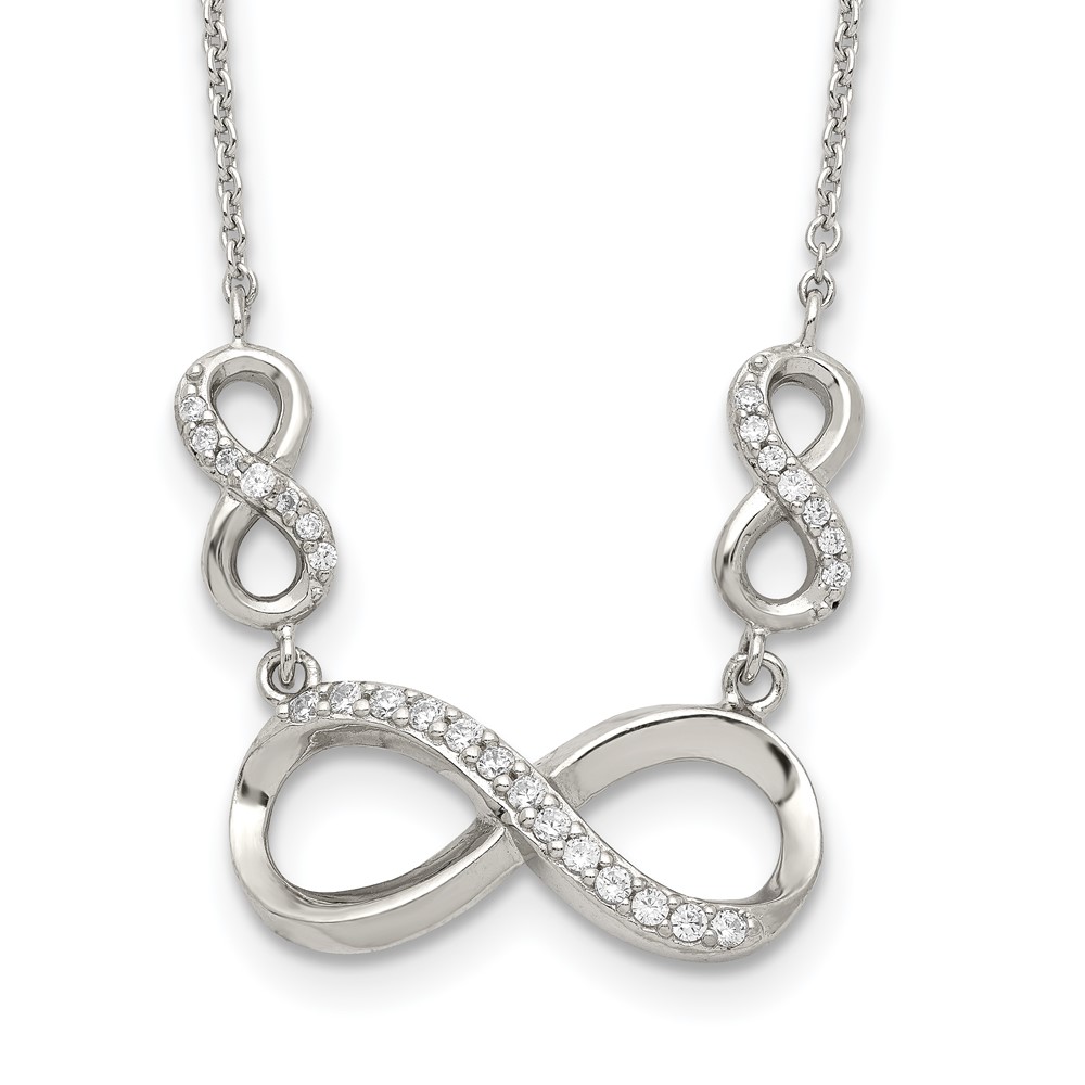 Sterling Silver Rhodium-plated Polished CZ Infinity Symbol Necklace (QG3720-18)