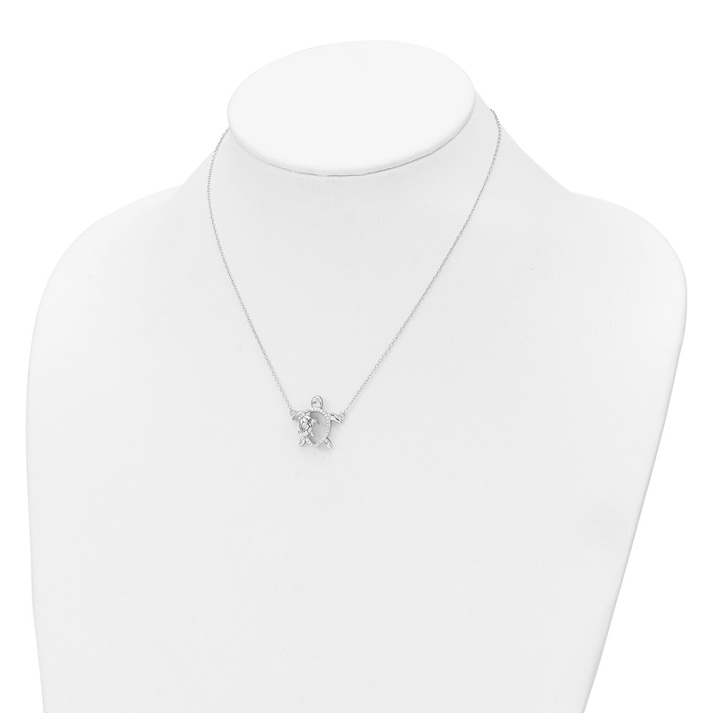 Sterling Silver Rhodium-plated Polished CZ Turtles 16 inch with a 2 inch extention Necklace (QG6174-16)