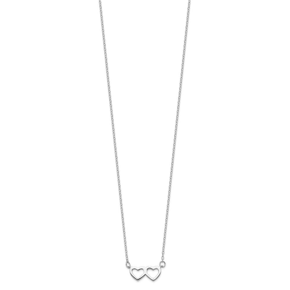| Fine Jewelry | Sterling Silver Rhodium-plated Polished Double Linked Heart 16 inch Necklace with 2 inch extension