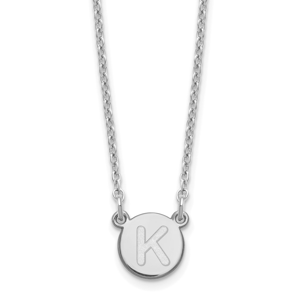 Sterling Silver Rhodium-plated Tiny Circle Block Letter K Initial Necklace (XNA722SS/K)
