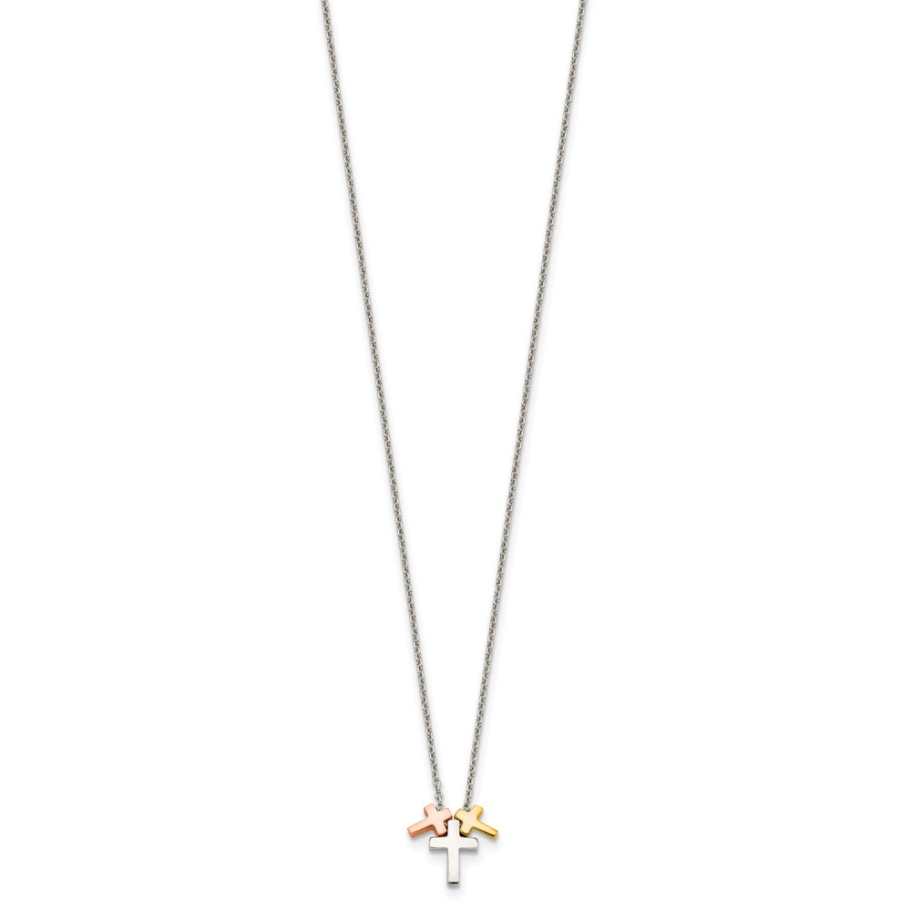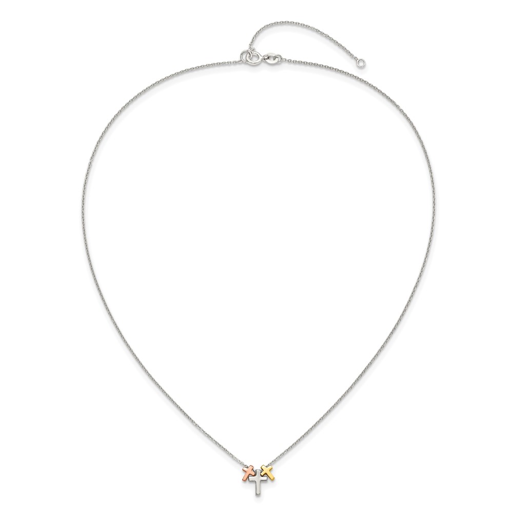 Sterling Silver Rose and Gold-tone 3-Cross w/ 2in ext. Necklace (QG5242-16)