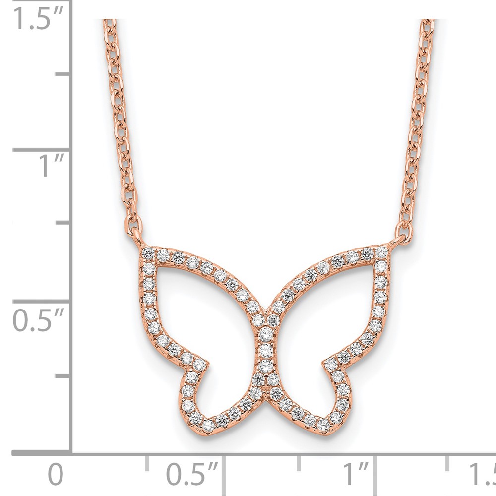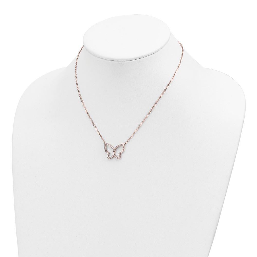 Sterling Silver Rose-tone Polished Open Butterfly CZ w/2 in ext. Necklace