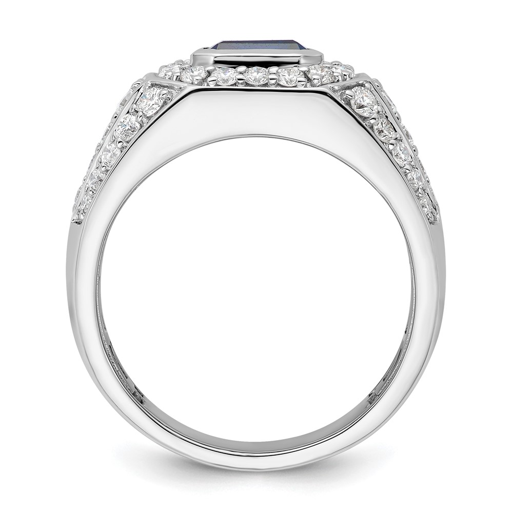 IBGoodman 10k White Gold 1 7/8 carat Lab Grown Diamond VS/SI+ G+ and Lab Created Blue Sapphire Men's Ring (RM9833-CSA-190-0WLG)