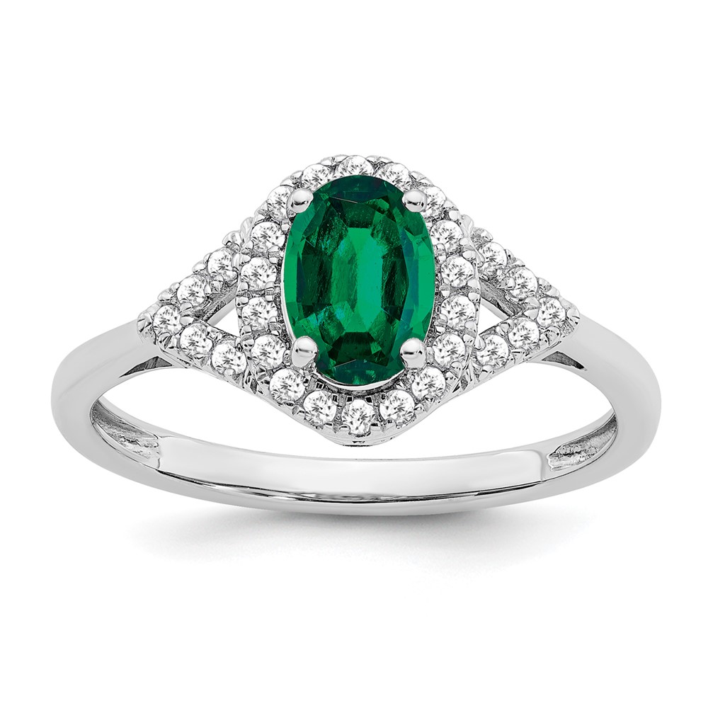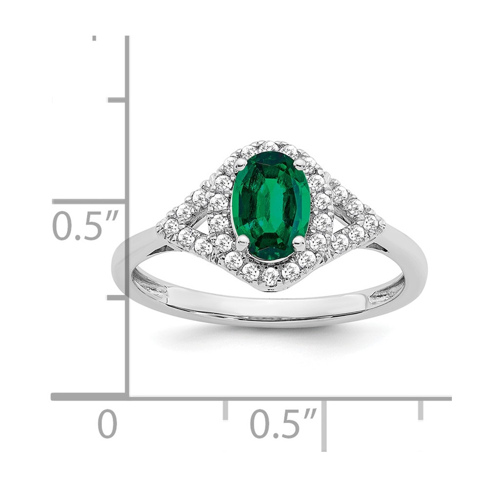 | Fine Jewelry | 14k White Gold Oval Created Emerald and Diamond Ring