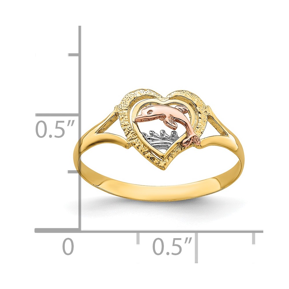 14K Yellow and Rose Gold W/Rhodium Dolphin In Heart Ring (K2068)