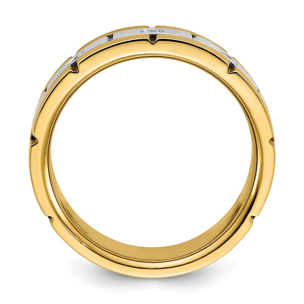 IBGoodman 14k Two-tone Men's Polished Satin and Grooved 3-Stone 1/6 Carat AA Quality Diamond Ring (B63899-4YWAA)