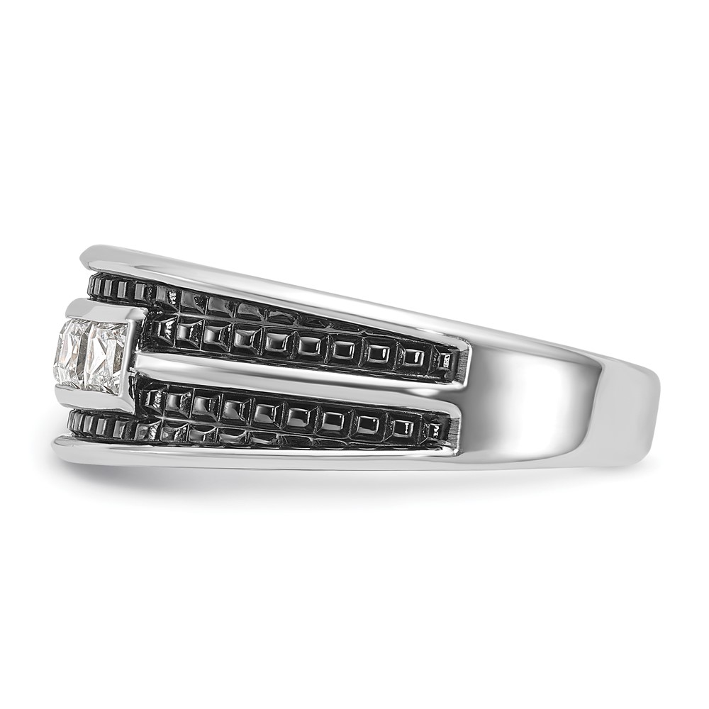 IBGoodman 14k White Gold with Black Rhodium Men's Polished and Textured Square 5-Stone 3/4 Carat AA Quality Diamond Ring (B64095-4WAA)