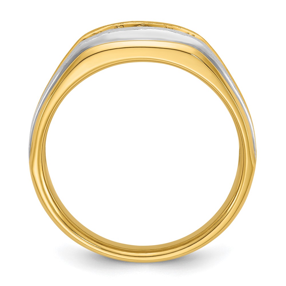 | Fine Jewelry | IBGoodman 14k with White Rhodium Men's Polished Satin and Grooved 5-Stone 1/4 Carat AA Quality Diamond Ring