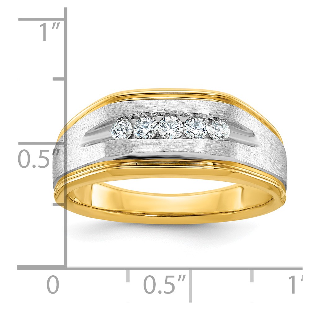 IBGoodman 14k with White Rhodium Men's Polished Satin and Grooved 5-Stone 1/4 Carat AA Quality Diamond Ring (B63944-4YAA)
