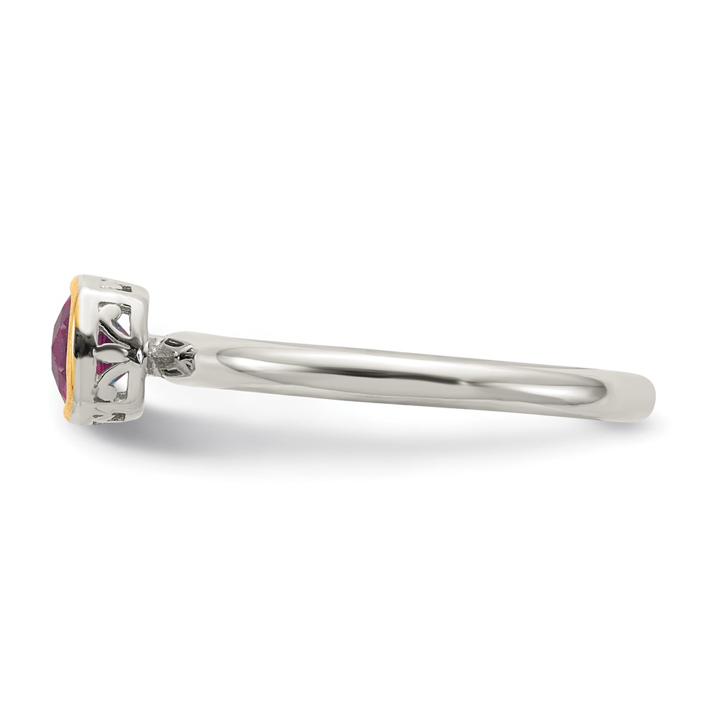 Shey Couture Sterling Silver Rhodium-plated with 14K Accent Polished Cushion-cut Rhodolite Garnet Ring