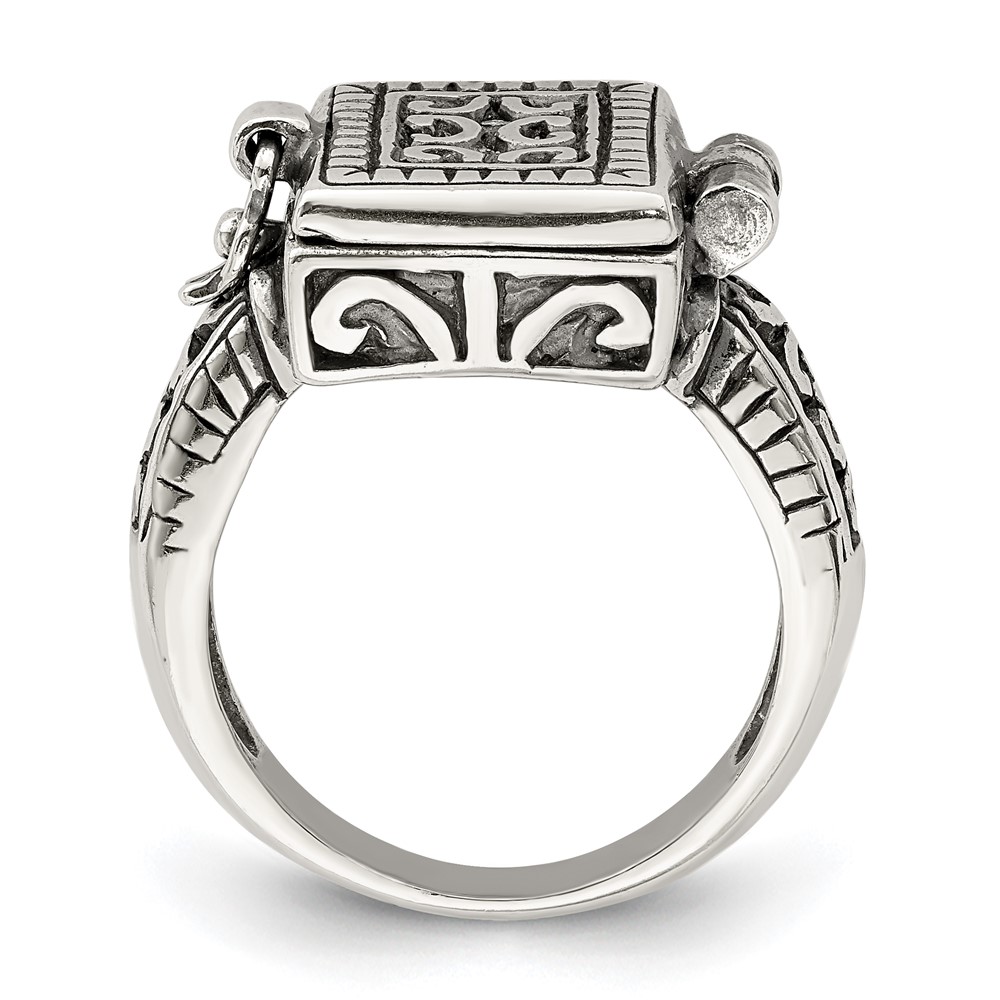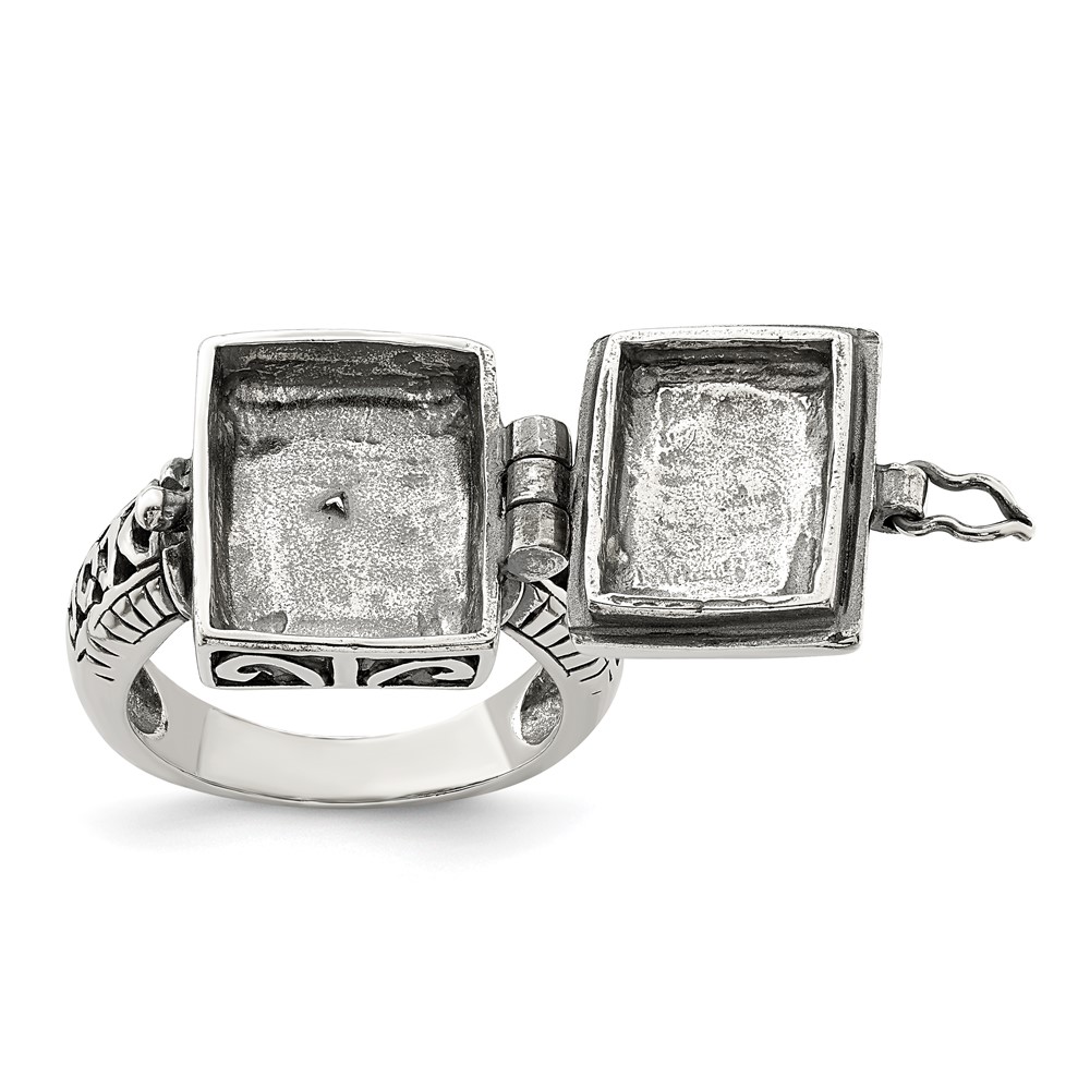 Sterling Silver Antiqued Rectangular Locket Ring (QR1764-6)