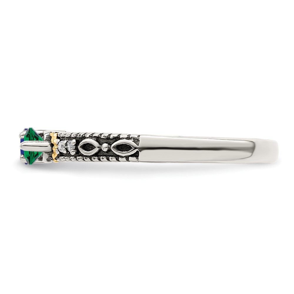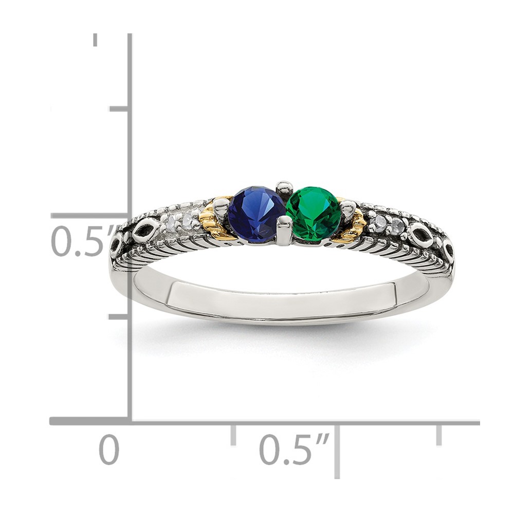 | Fine Jewelry | Sterling Silver Antiqued w/14k 2-stone w/Diamond Mother's Ring Semi-Mount