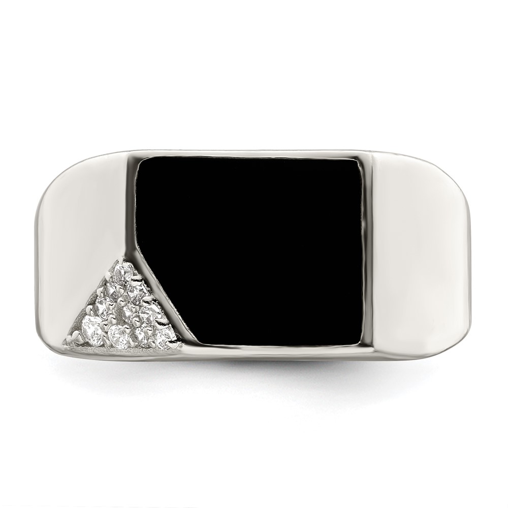 | Fine Jewelry | Sterling Silver Black Enameled and CZ Mens Ring