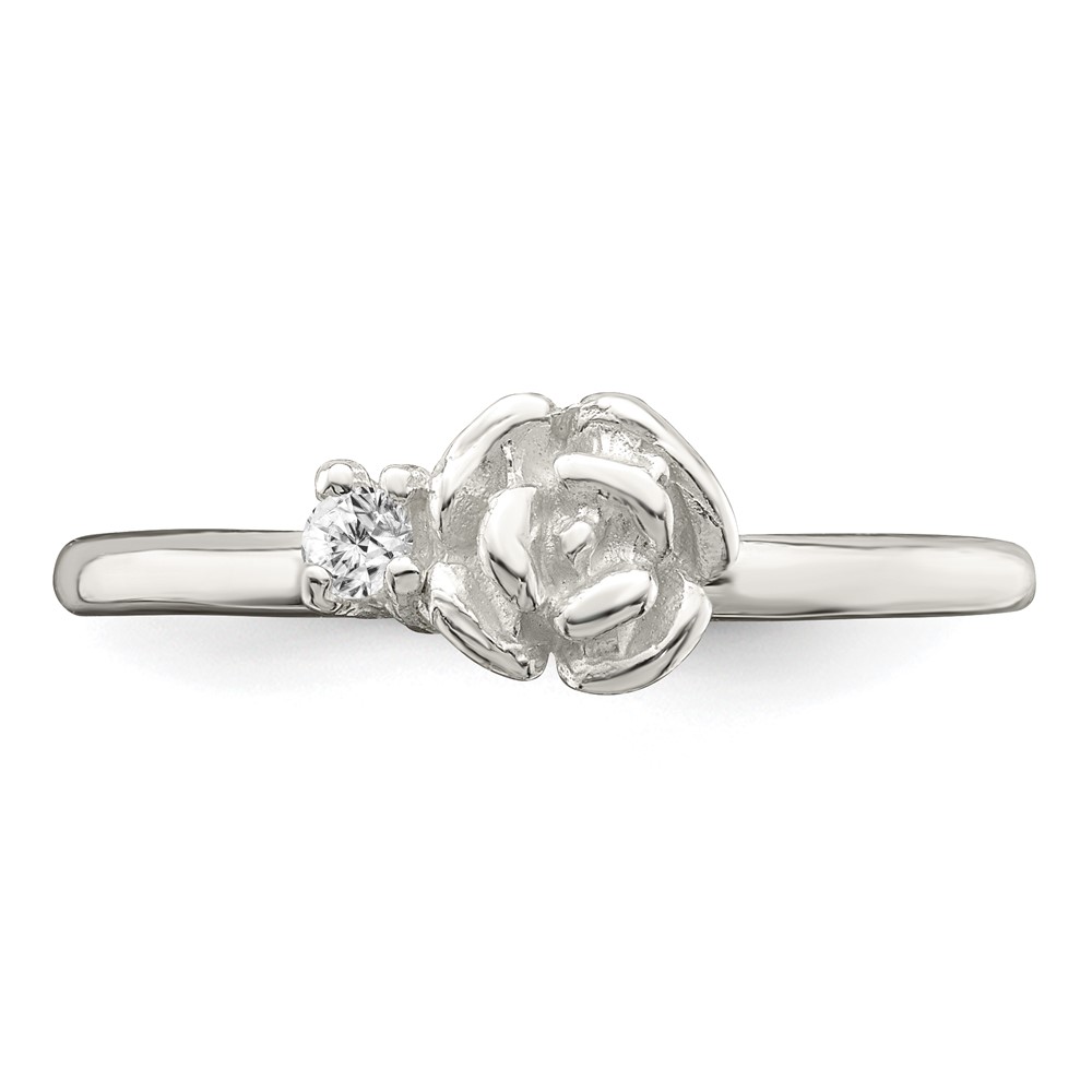 Sterling Silver Clear CZ Rose Kid's Ring