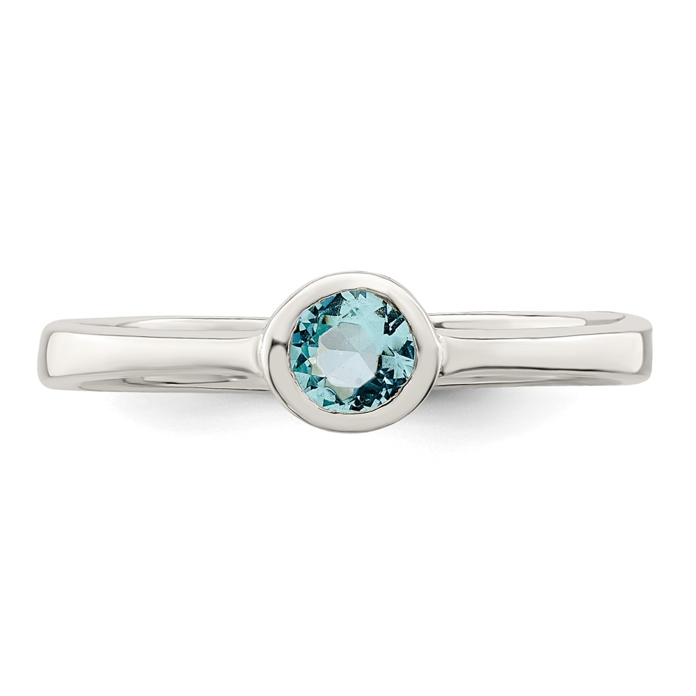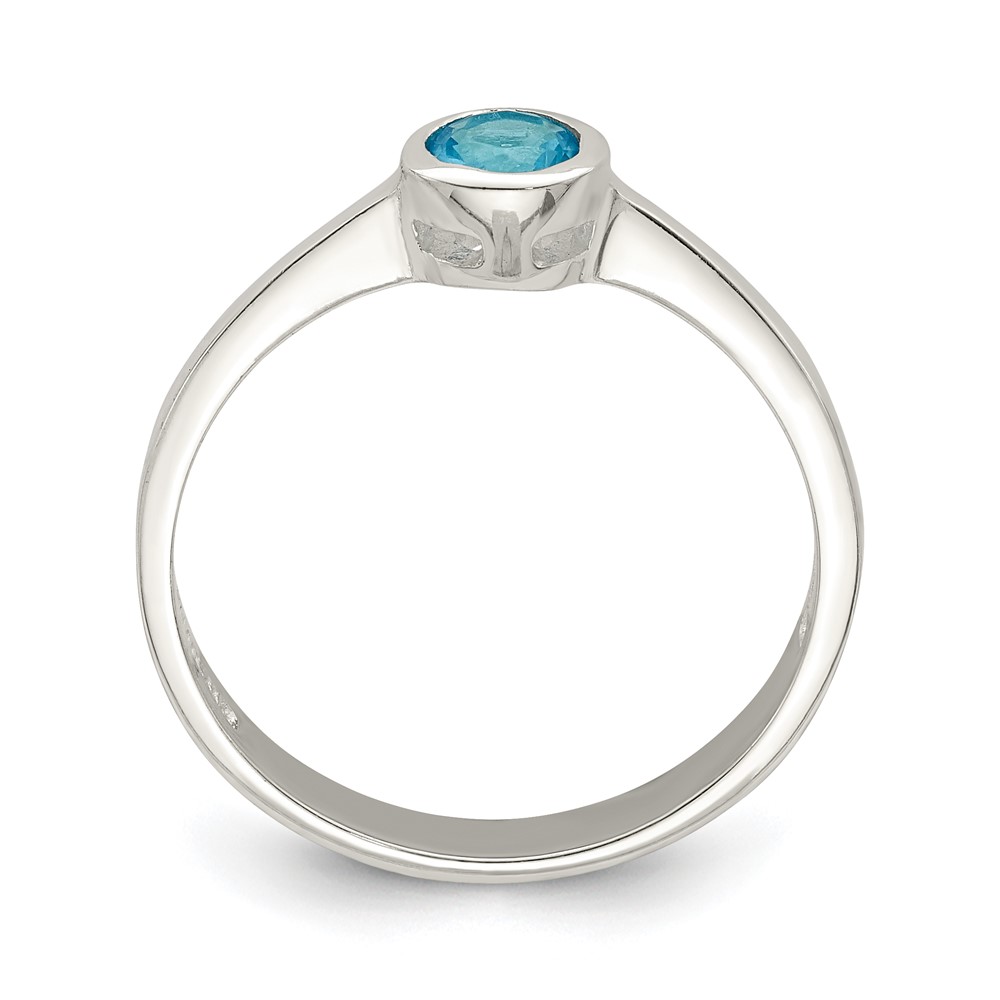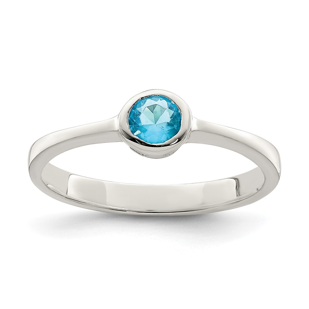 Sterling Silver Light Blue Round Bezel CZ Ring (QR4400-8)