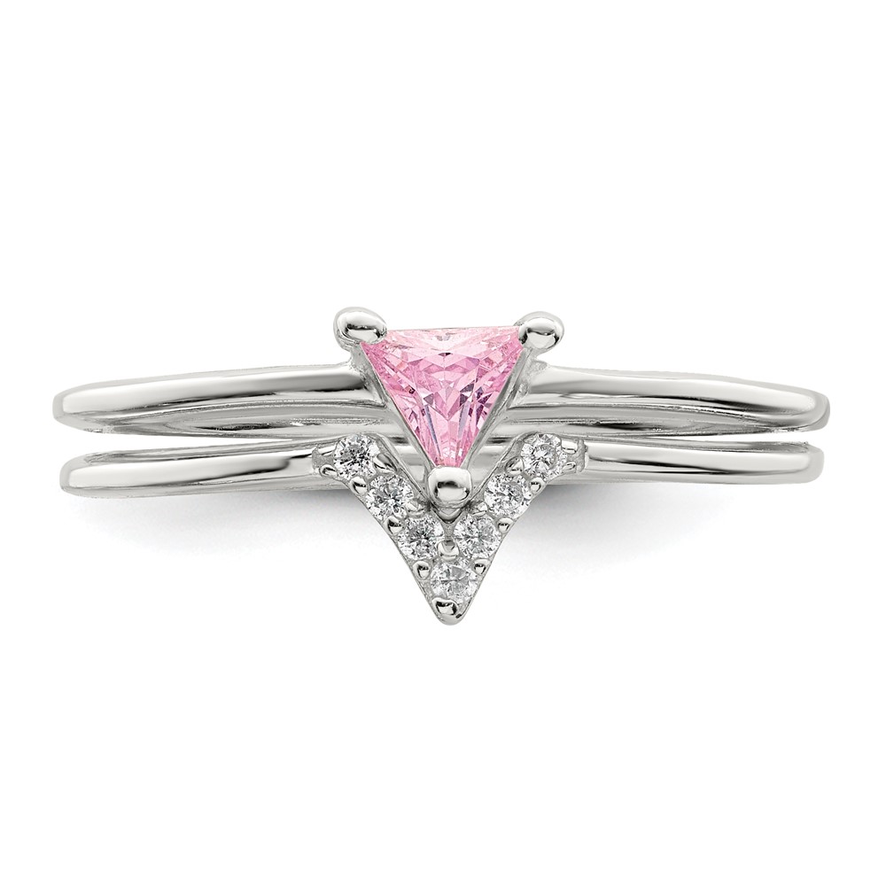 | Fine Jewelry | Sterling Silver Pink Trillion CZ and White CZ Ring Set