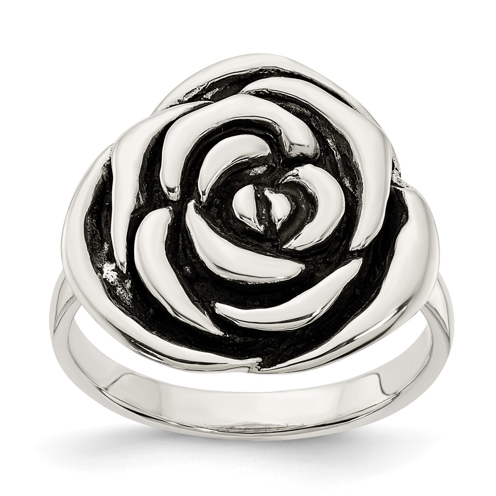 | Fine Jewelry | Sterling Silver Polished Antiqued Rose Ring