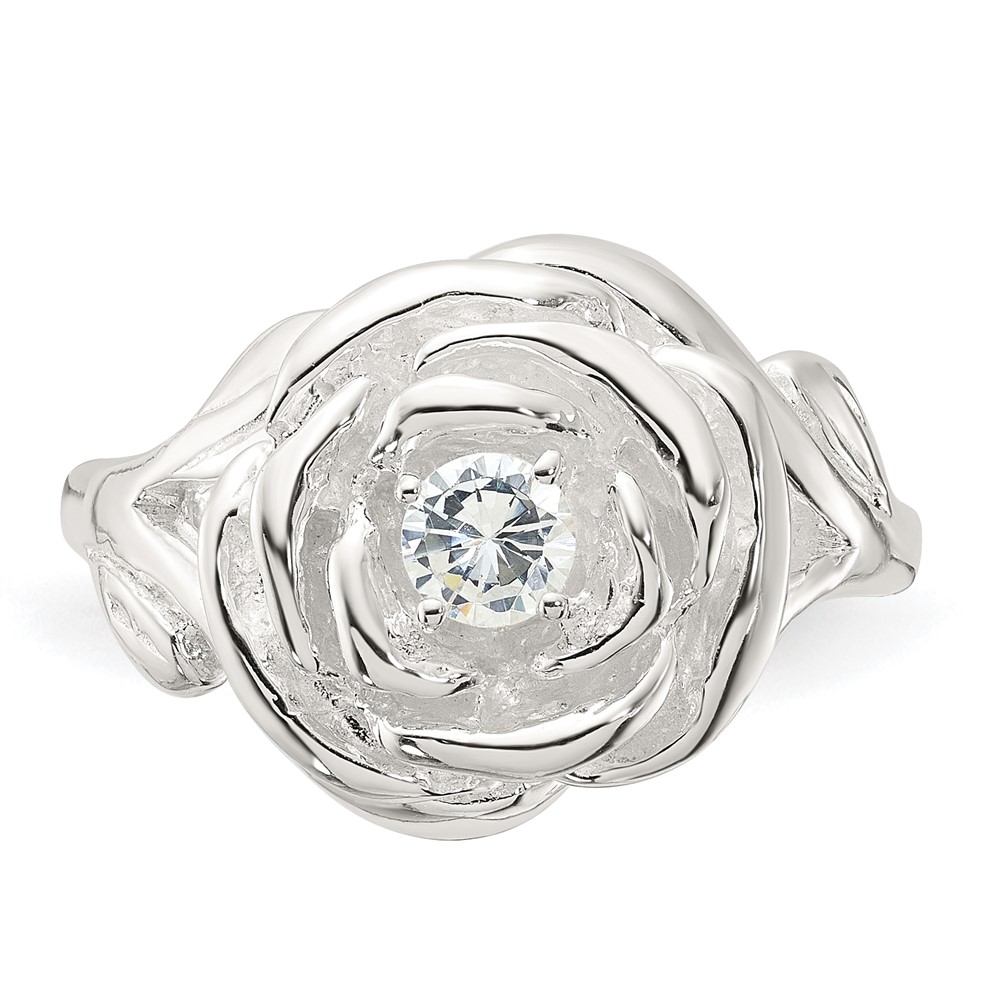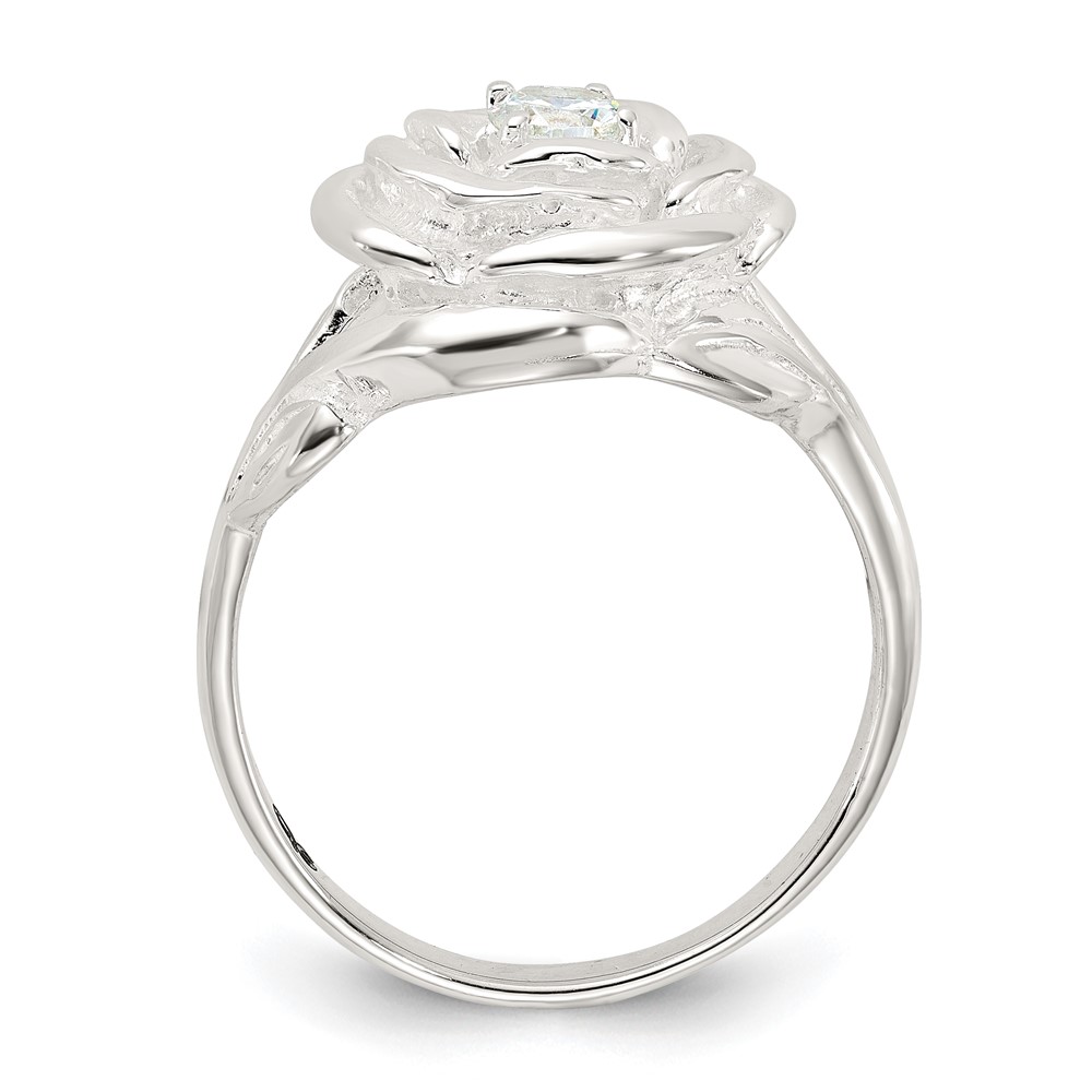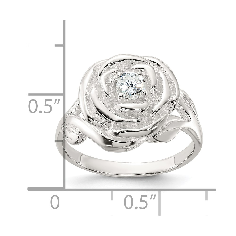 Sterling Silver Polished CZ Flower Rose Ring (QR7498-7)