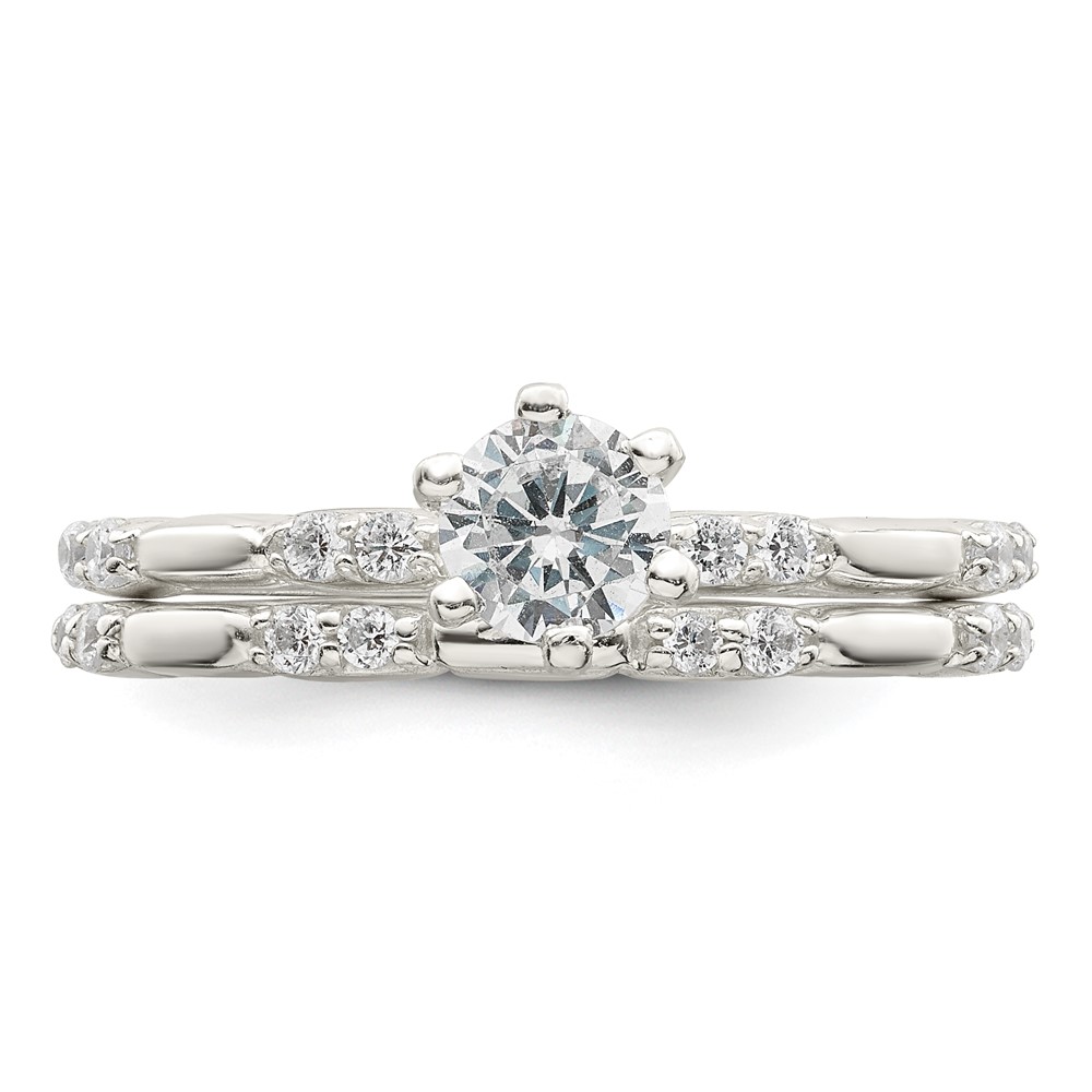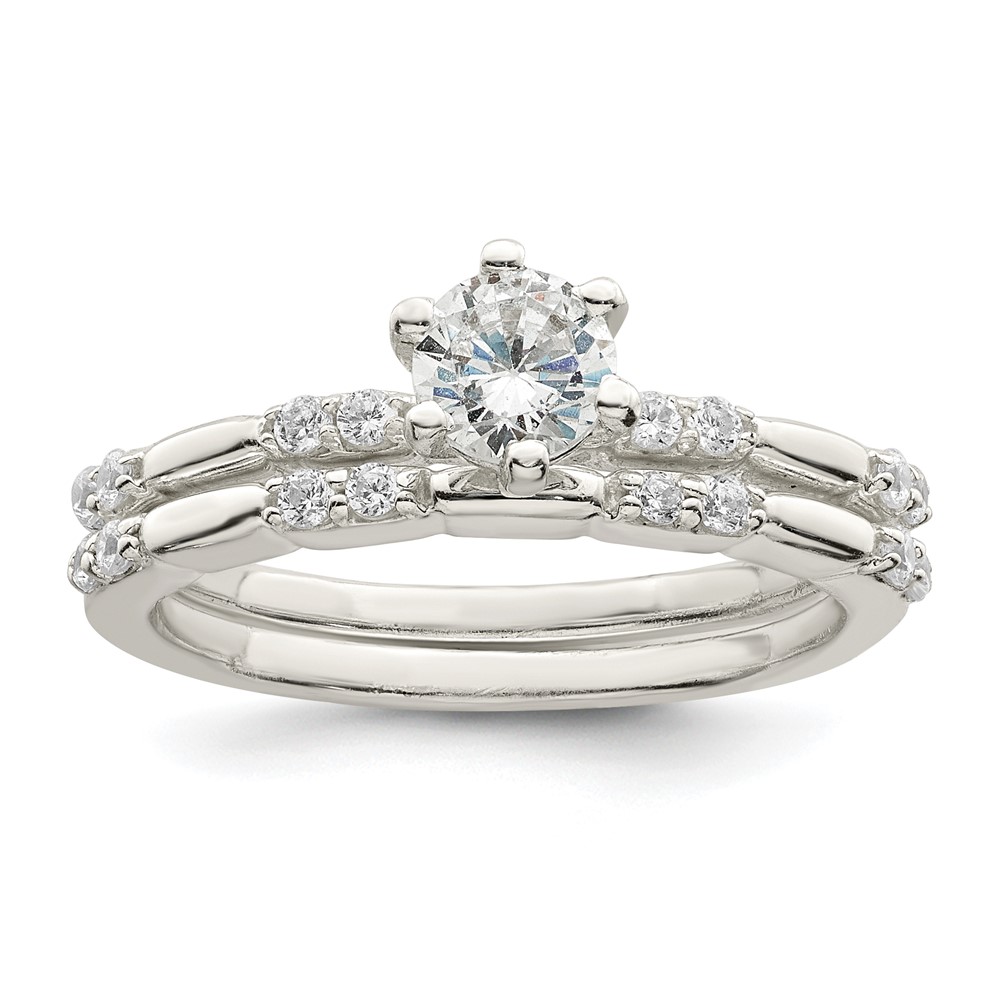 Sterling Silver Polished CZ Wedding Ring Set (QR7295-7)