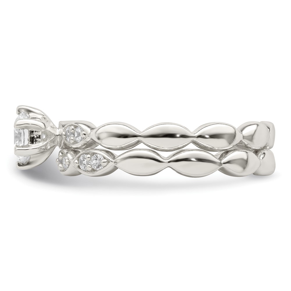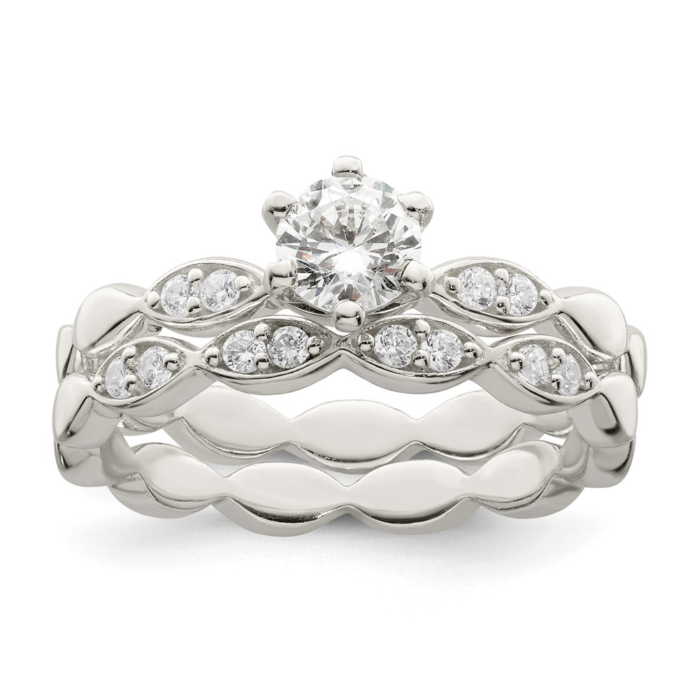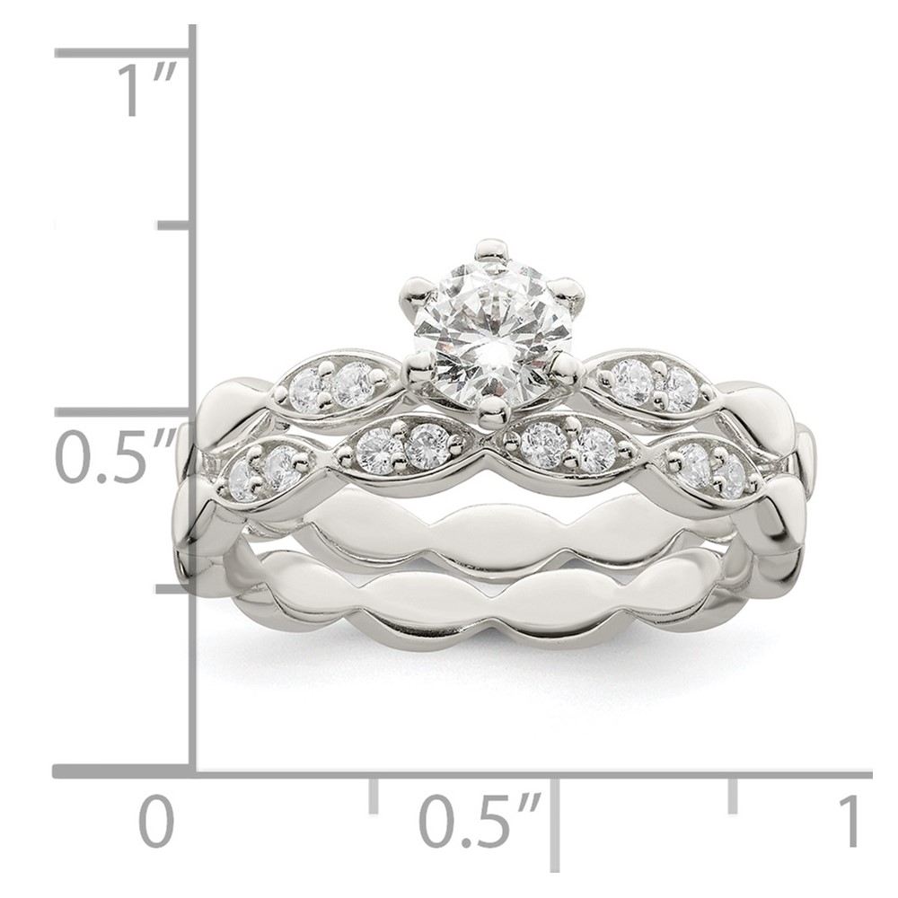 Sterling Silver Polished CZ Wedding Ring Set (QR7296-6)