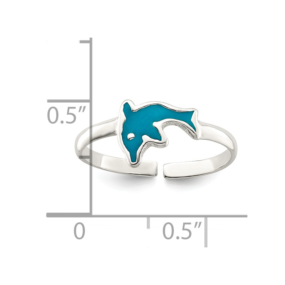 Sterling Silver Polished Enameled Dolphin Toe Ring (QR6783)