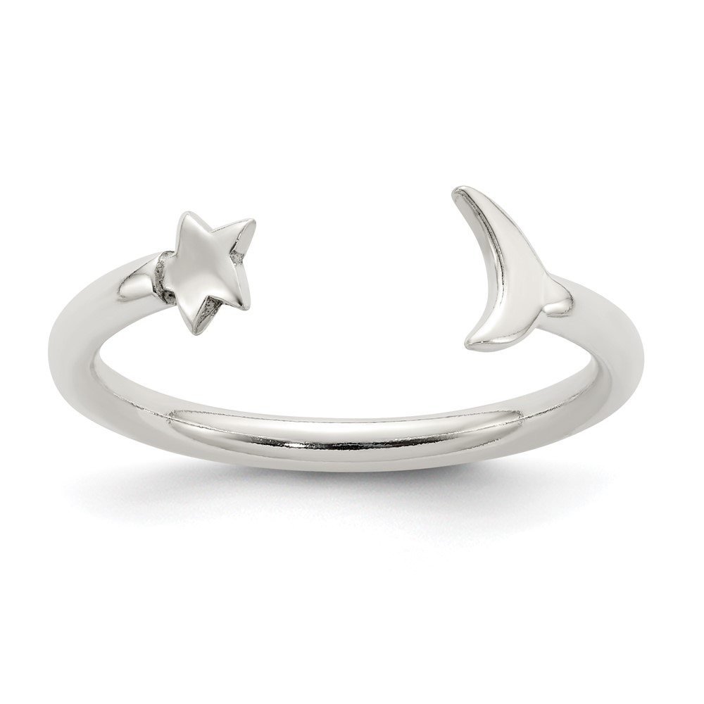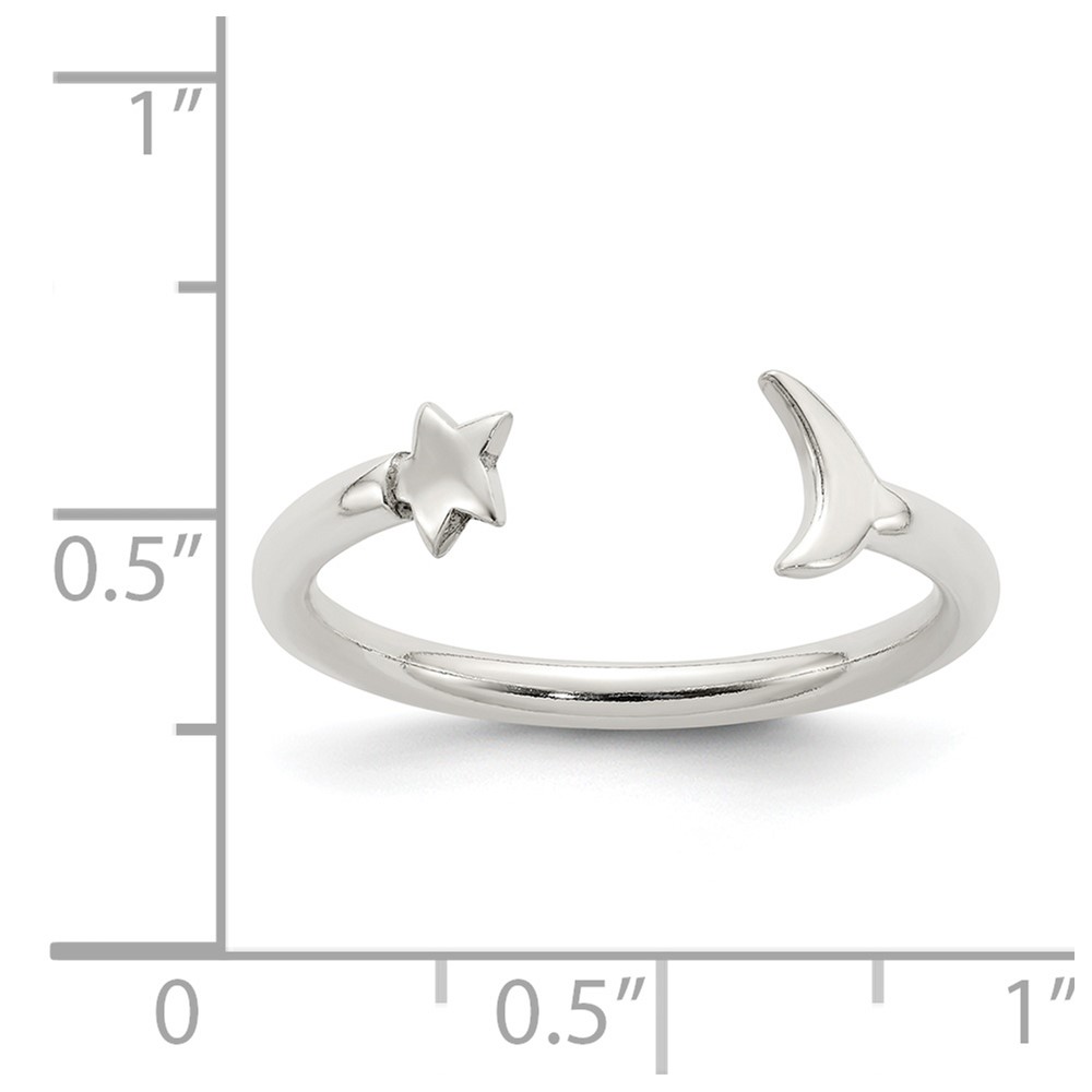 Sterling Silver Polished Half Moon and Star Adjustable Ring (QR6191)