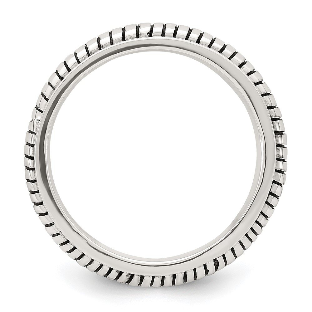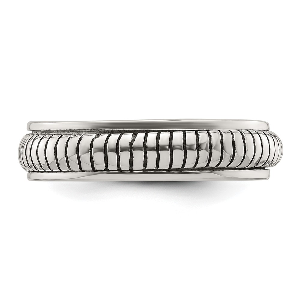 Sterling Silver Polished Oxidized Half Round Patterned Men's Ring