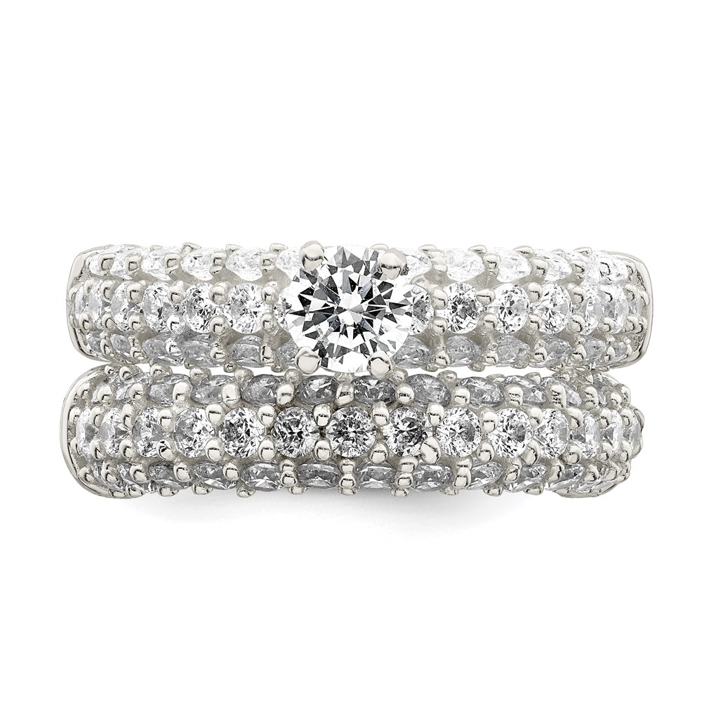 Sterling Silver Polished Pave CZ Wedding Ring Set (QR7304-8)