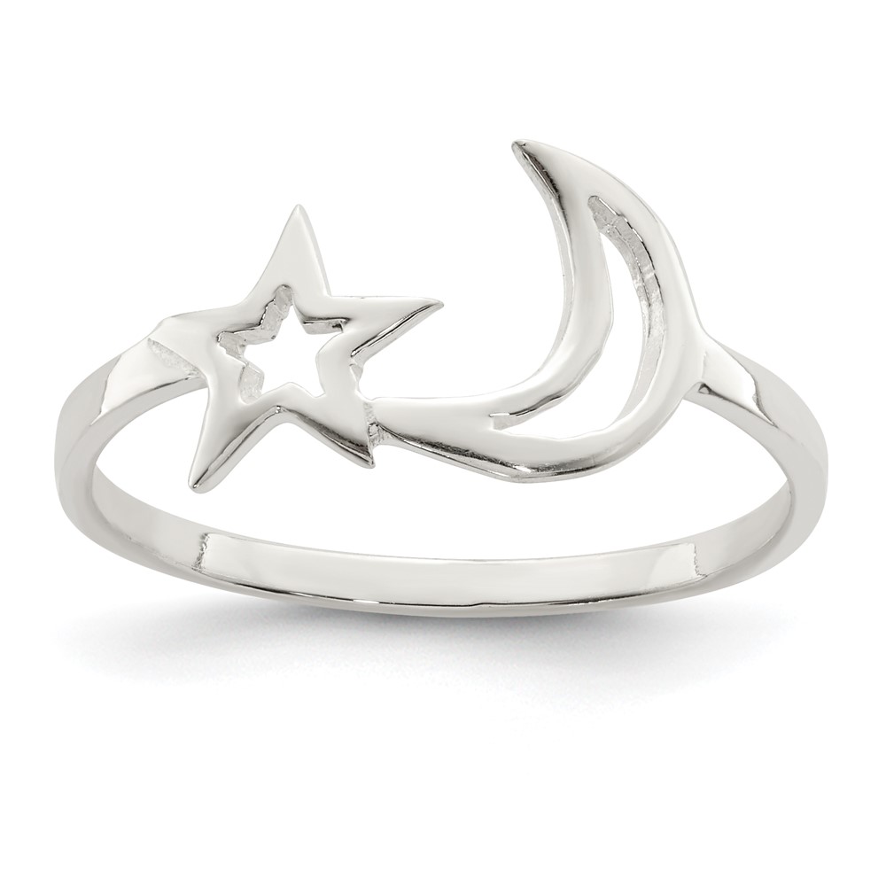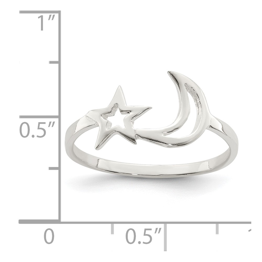 Sterling Silver Polished Star & Moon Ring (QR6189-8)