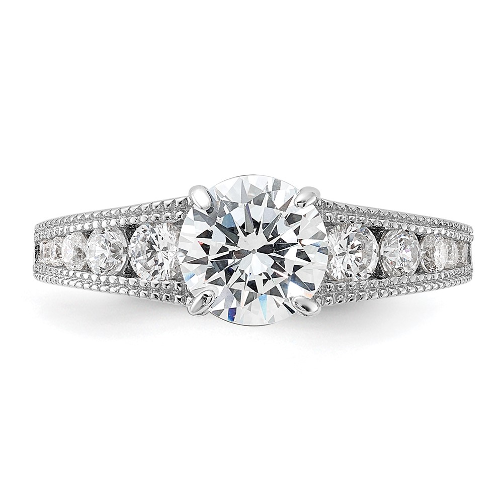 Sterling Silver Rh-plated 7mm Round Channel Set CZ Engagement Ring (QR7584-6)