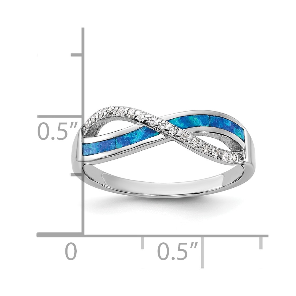 Sterling Silver RH-plated CZ and Blue Cr. Opal Inlay Infinity Symbol Ring (QR7468-7)