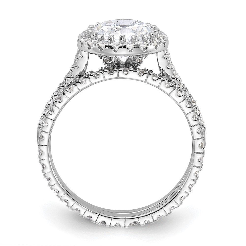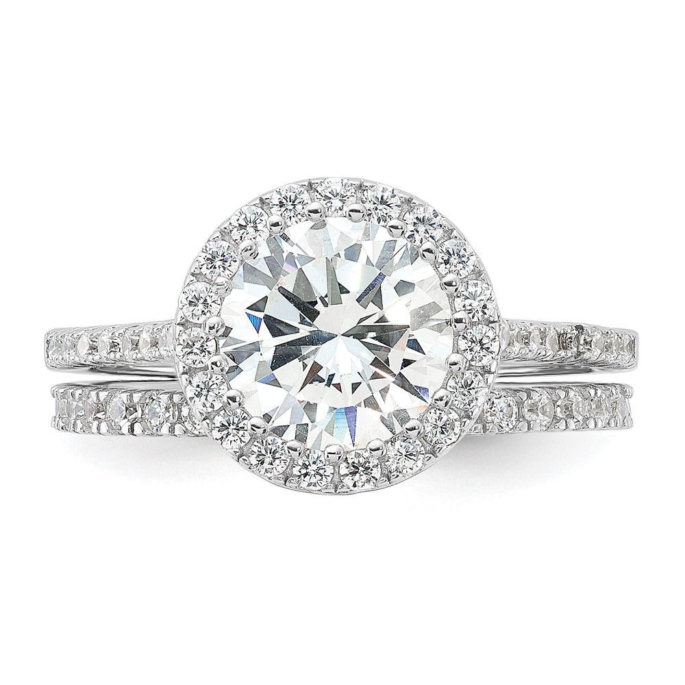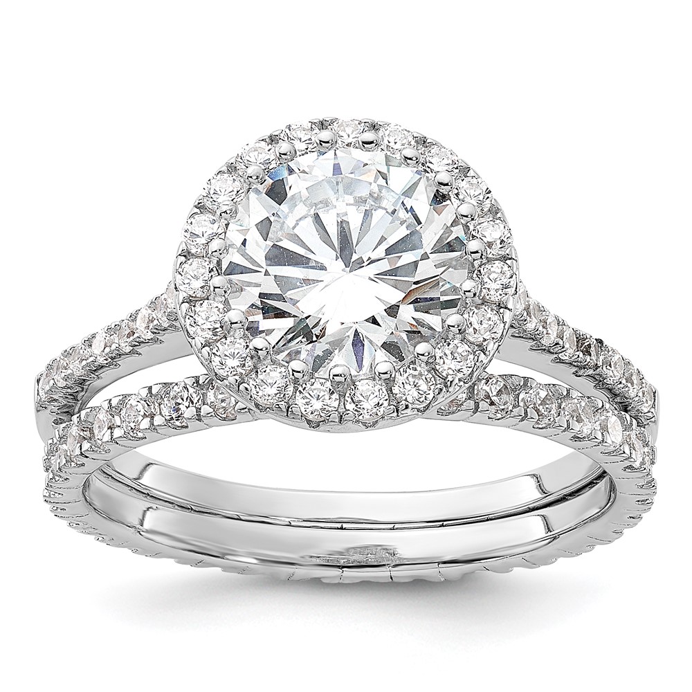 | Fine Jewelry | Sterling Silver Rh-plt 11mm CZ Halo Engagement/Eternity Band 2 Ring Set