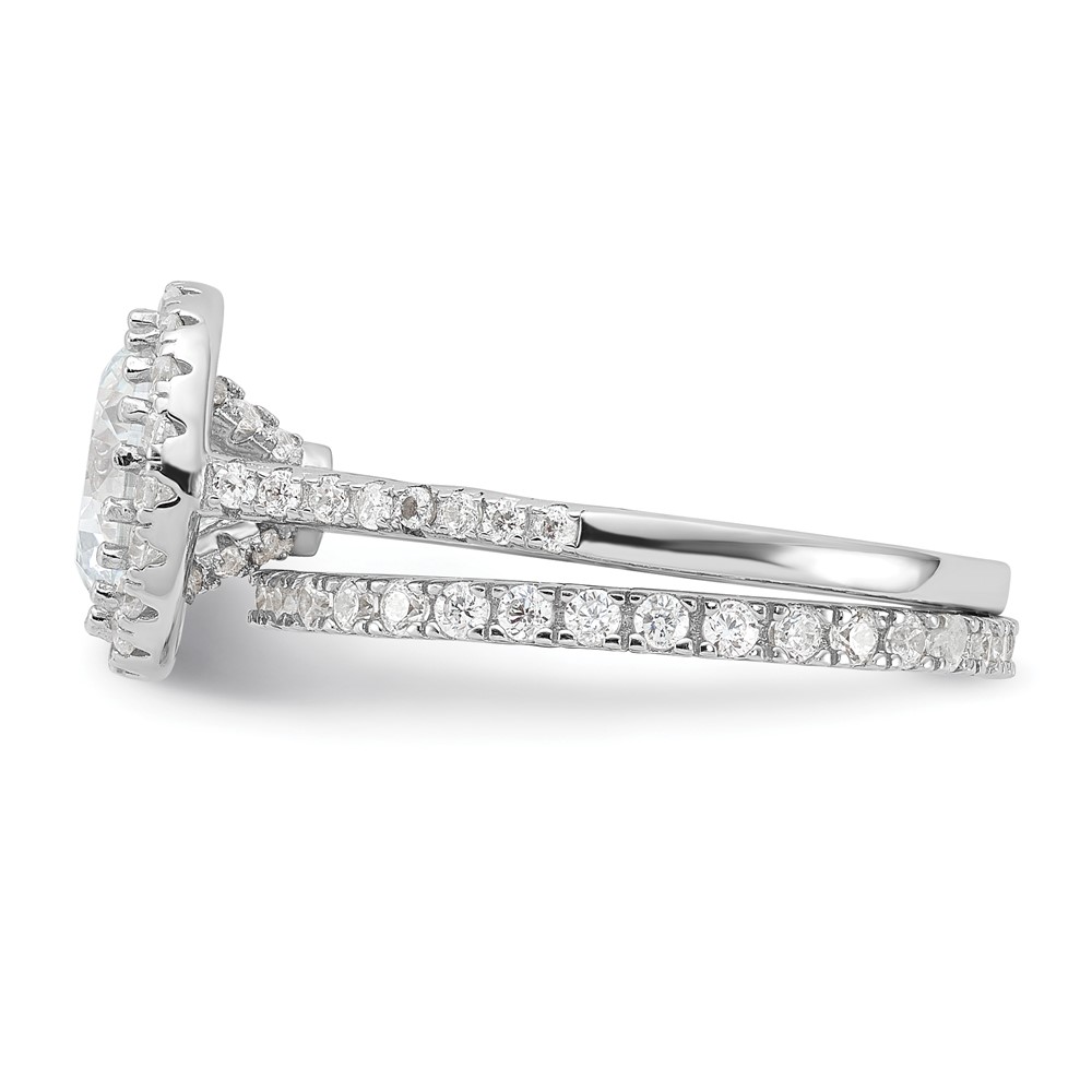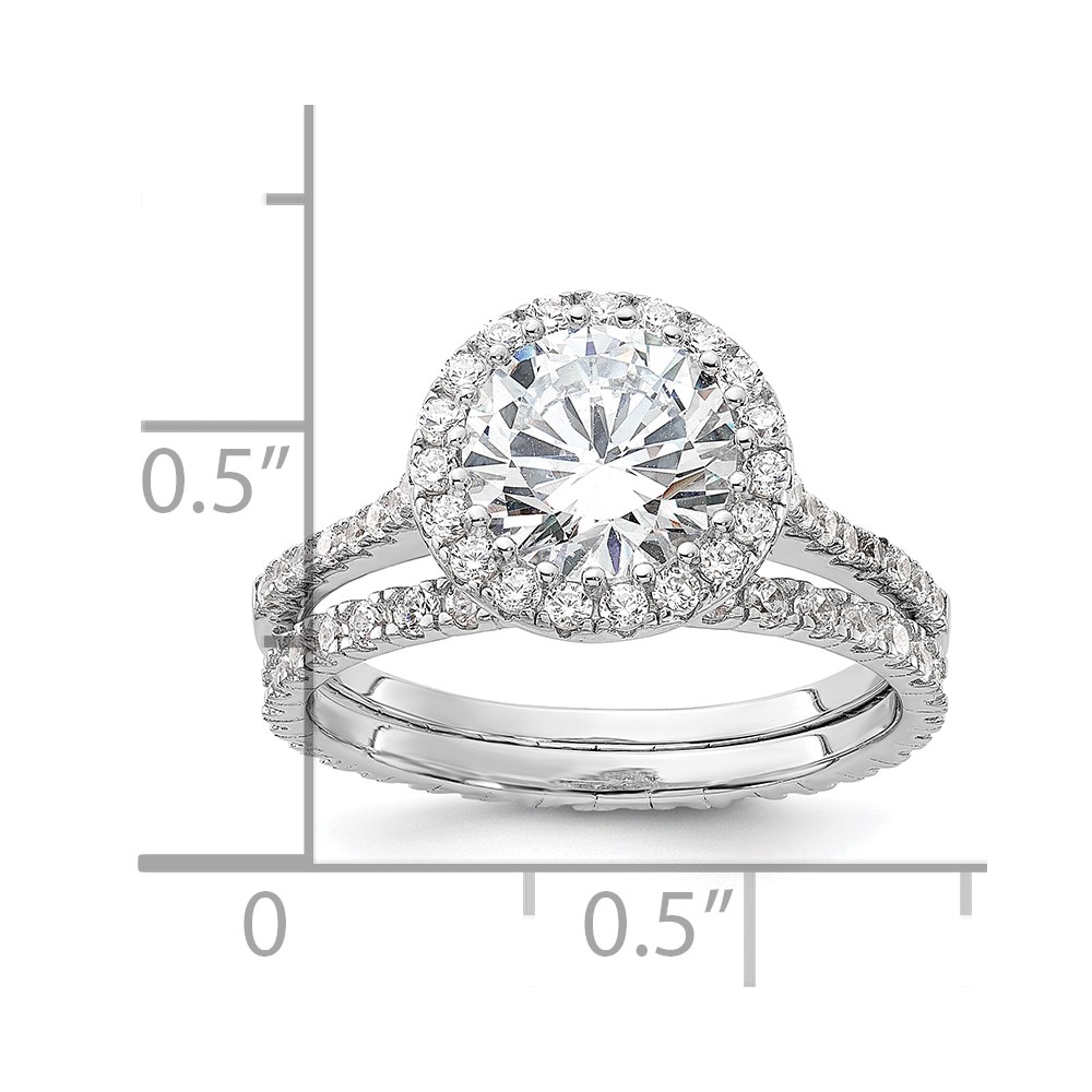 Sterling Silver Rh-plt 11mm CZ Halo Engagement/Eternity Band 2 Ring Set (QR7556-8)