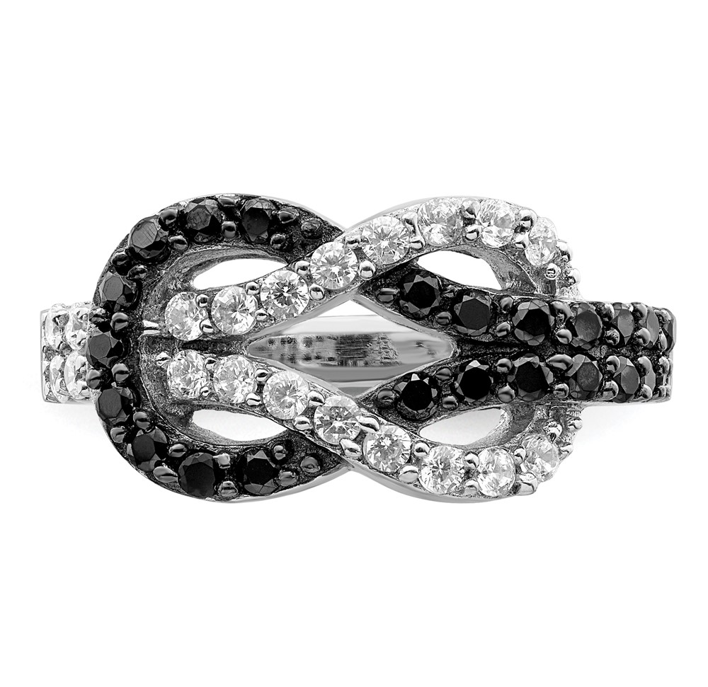 Sterling Silver Rhodium Black and Clear CZ Love Knot Ring (QR2751-7)