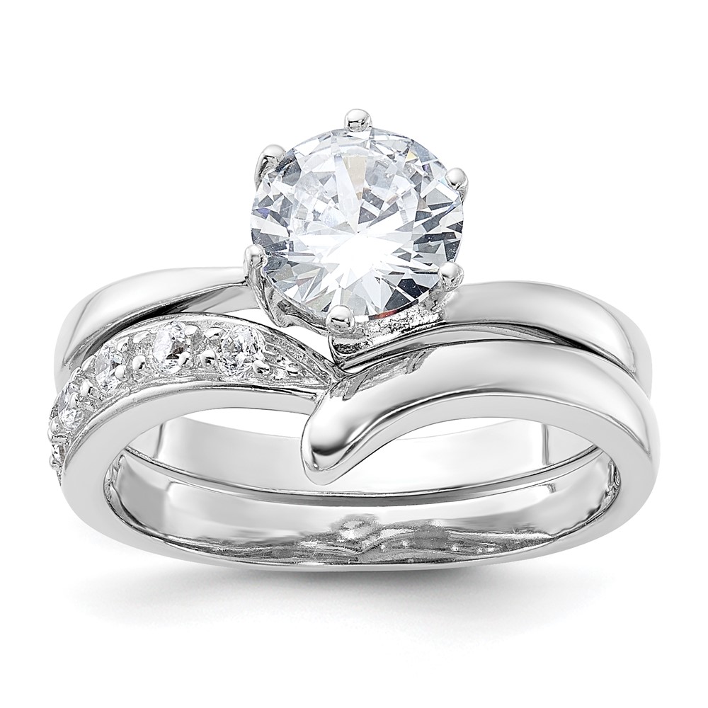 | Fine Jewelry | Sterling Silver Rhodium-plated 2-piece CZ Wedding Ring Set