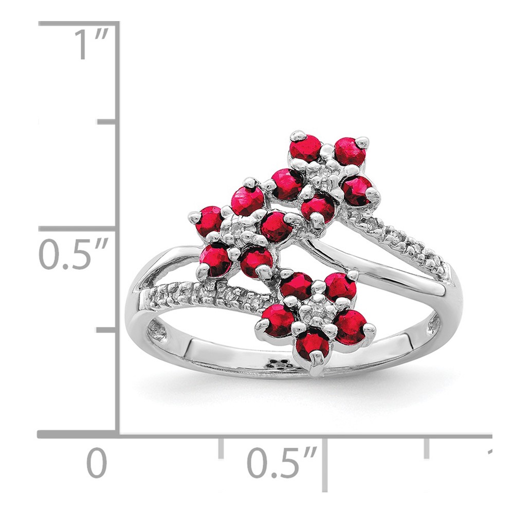 | Fine Jewelry | Sterling Silver Rhodium-plated 3 Flower Ruby and Diamond Ring