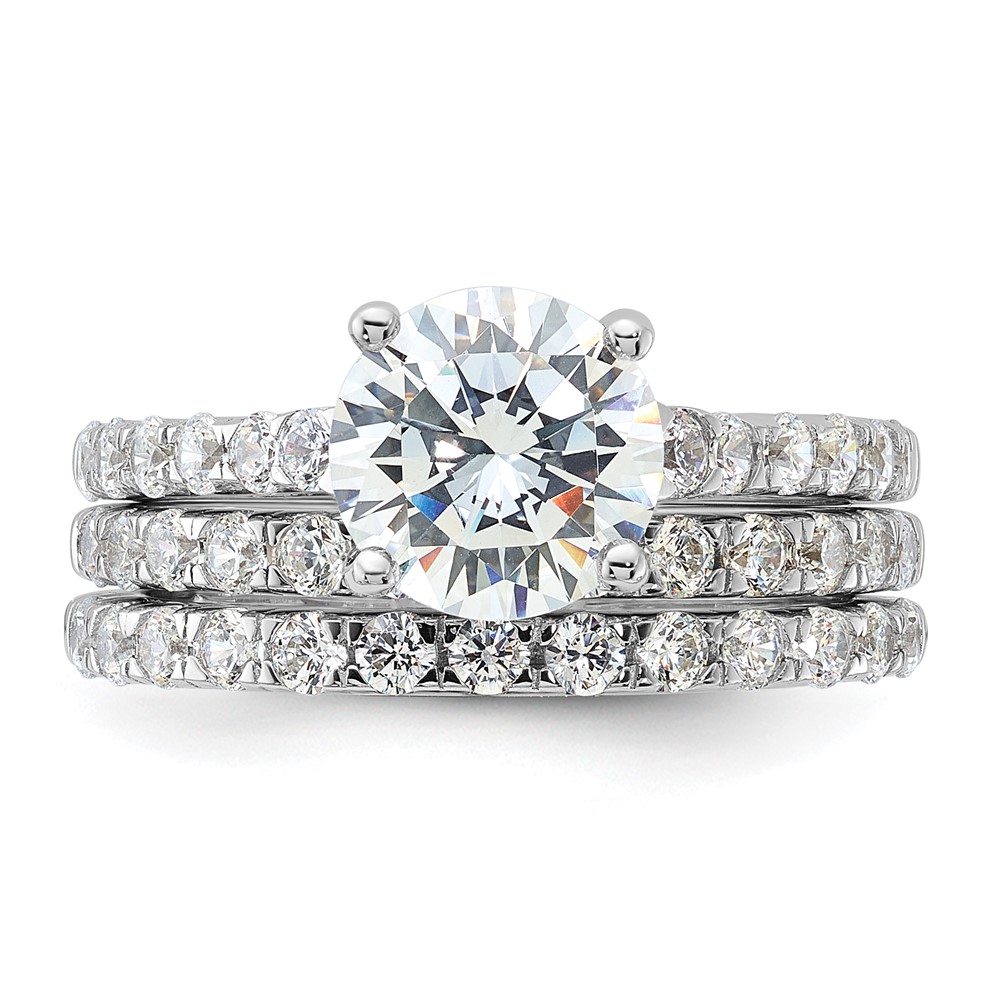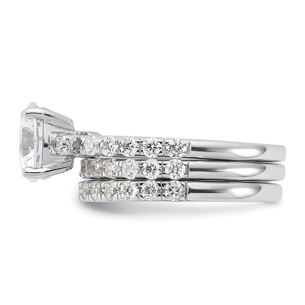 Sterling Silver Rhodium-plated 8mm CZ Ring & 2 CZ Band Set (QR6934-8)