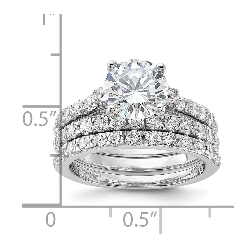| Fine Jewelry | Sterling Silver Rhodium-plated 8mm CZ Ring & 2 CZ Band Set