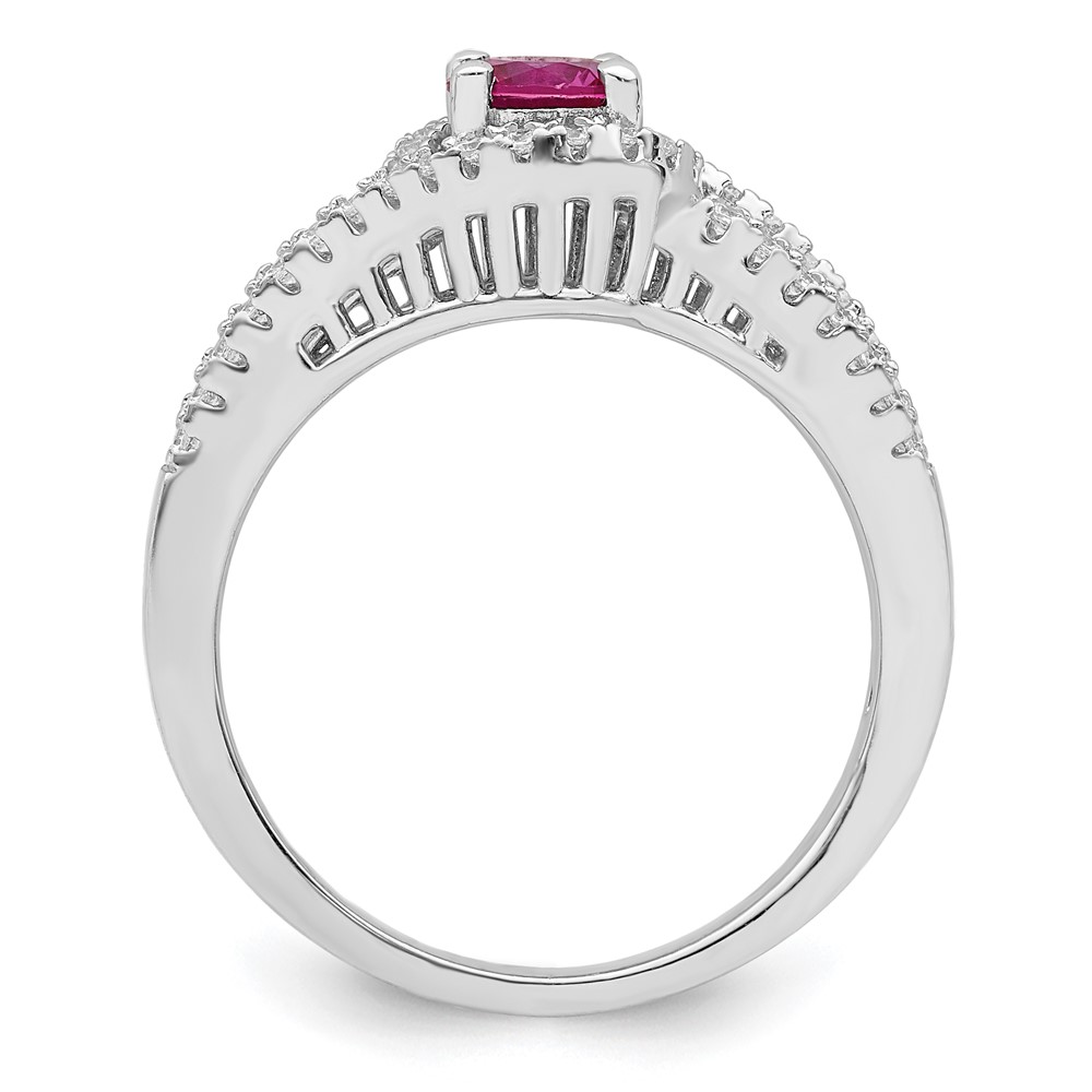 | Fine Jewelry | Sterling Silver Rhodium plated Created Red Corundum & White CZ Ring