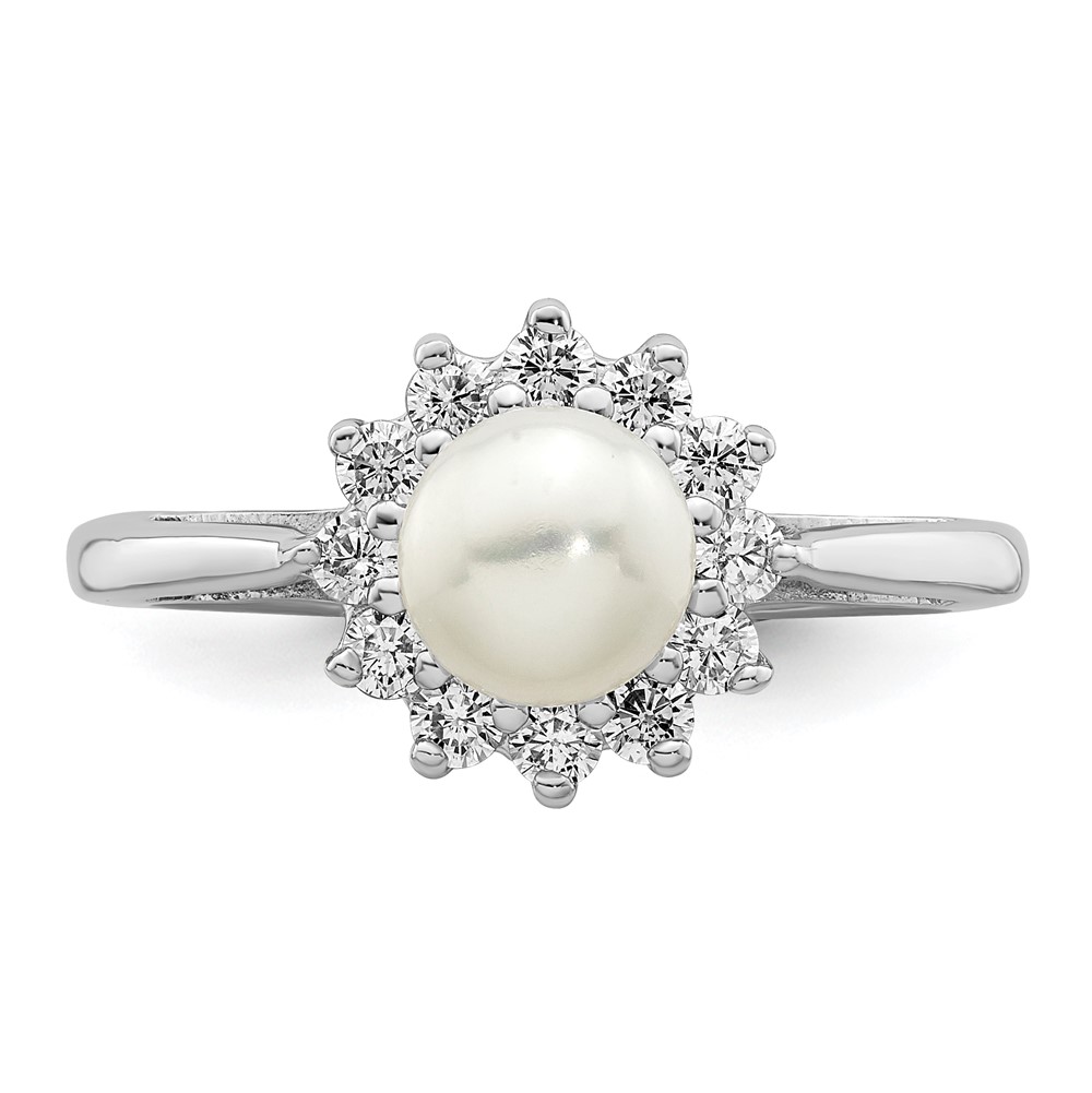 | Fine Jewelry | Sterling Silver Rhodium Plated CZ and FW Cultured Pearl Ring