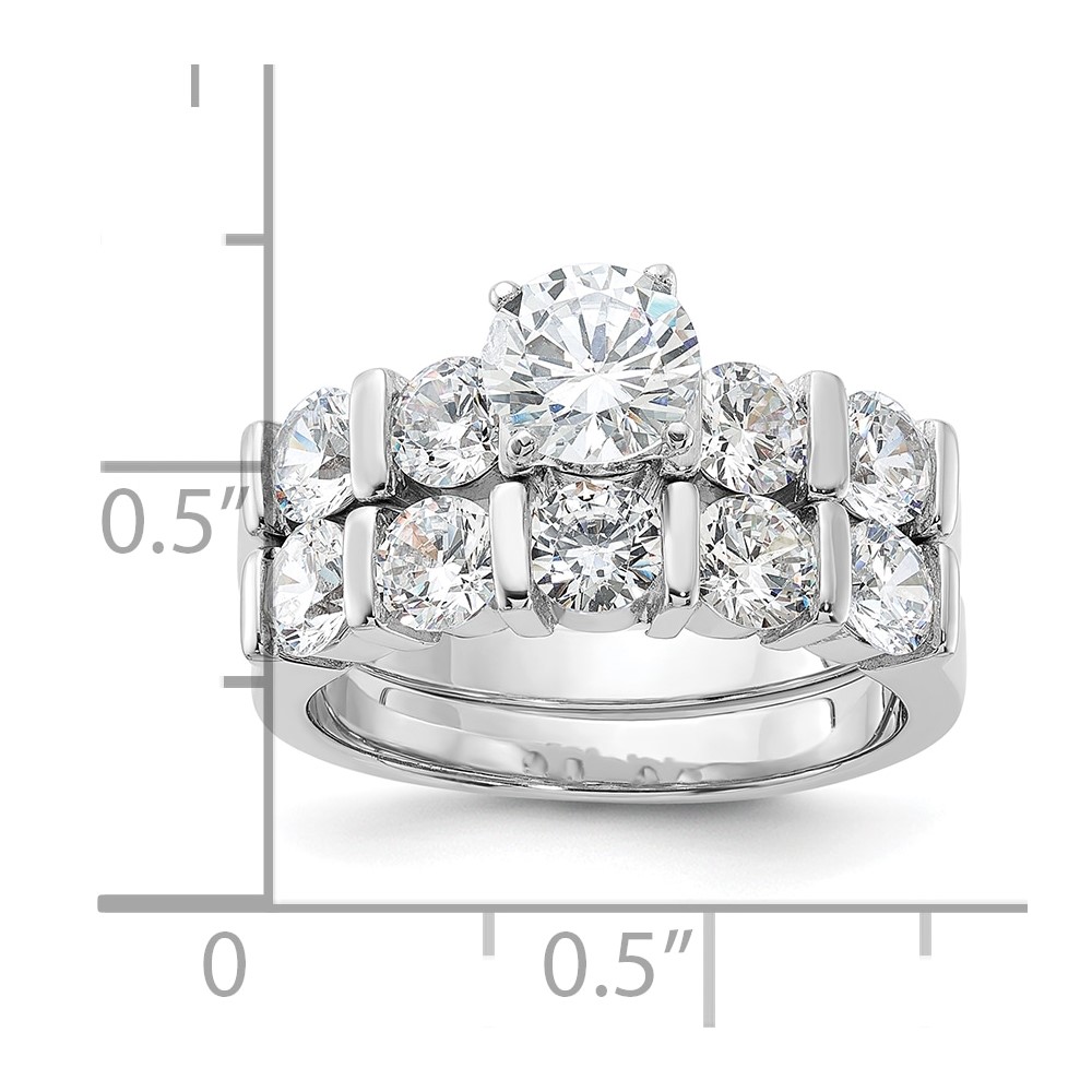 | Fine Jewelry | Sterling Silver Rhodium Plated CZ Engagement Ring and CZ Wedding Band Two Piece Set
