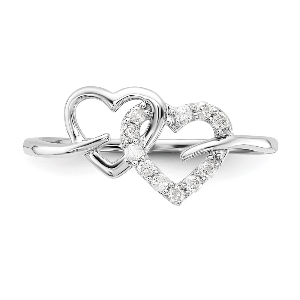 | Fine Jewelry | Sterling Silver Rhodium Plated Diamond Double Heart Ring